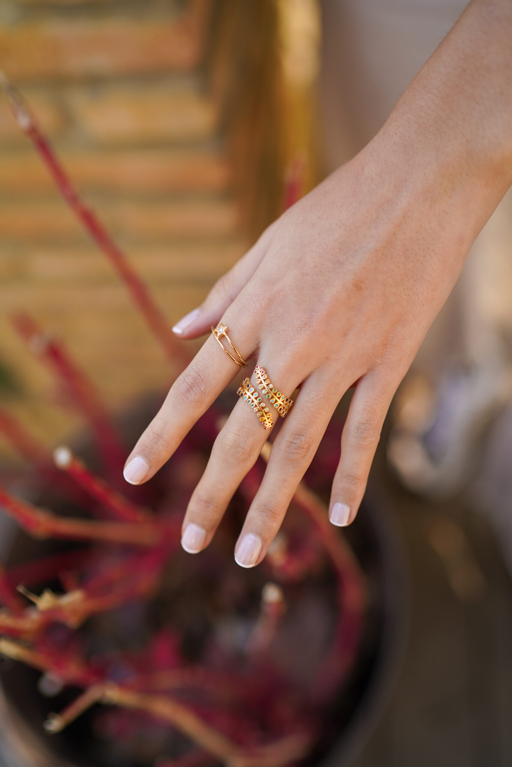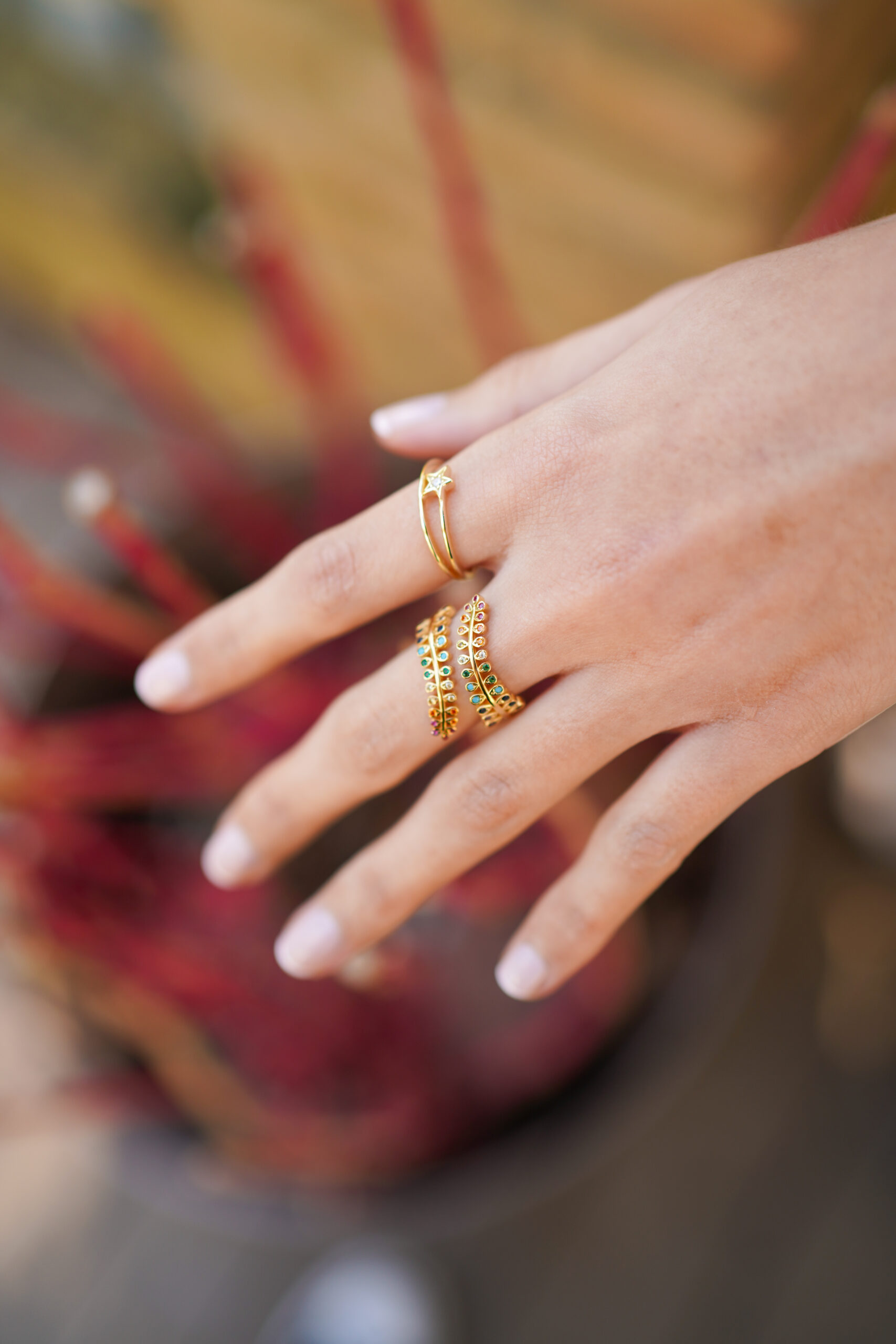 Anillo en plata de ley chapado en oro con una estrella de circonitas.