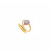 Anillo en plata de ley chapado en oro de doble aro con motivo en forma de gota de esmalte verde agua y piedra natural rosa.