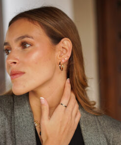 Anillo en plata de ley chapado en oro y esmalte negro con seis circonitas.
