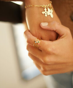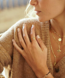 Anillo en plata de ley chapado en oro con forma de aro liso y circonita color negro central en forma de garra.