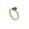 Anillo en plata de ley chapado en oro con con piedra central de color azul sujeta por cuatro garras y cuerpo de eslabones.