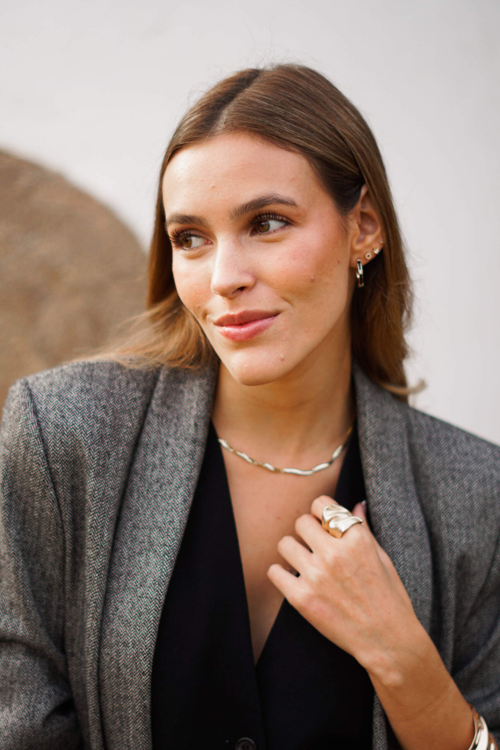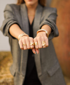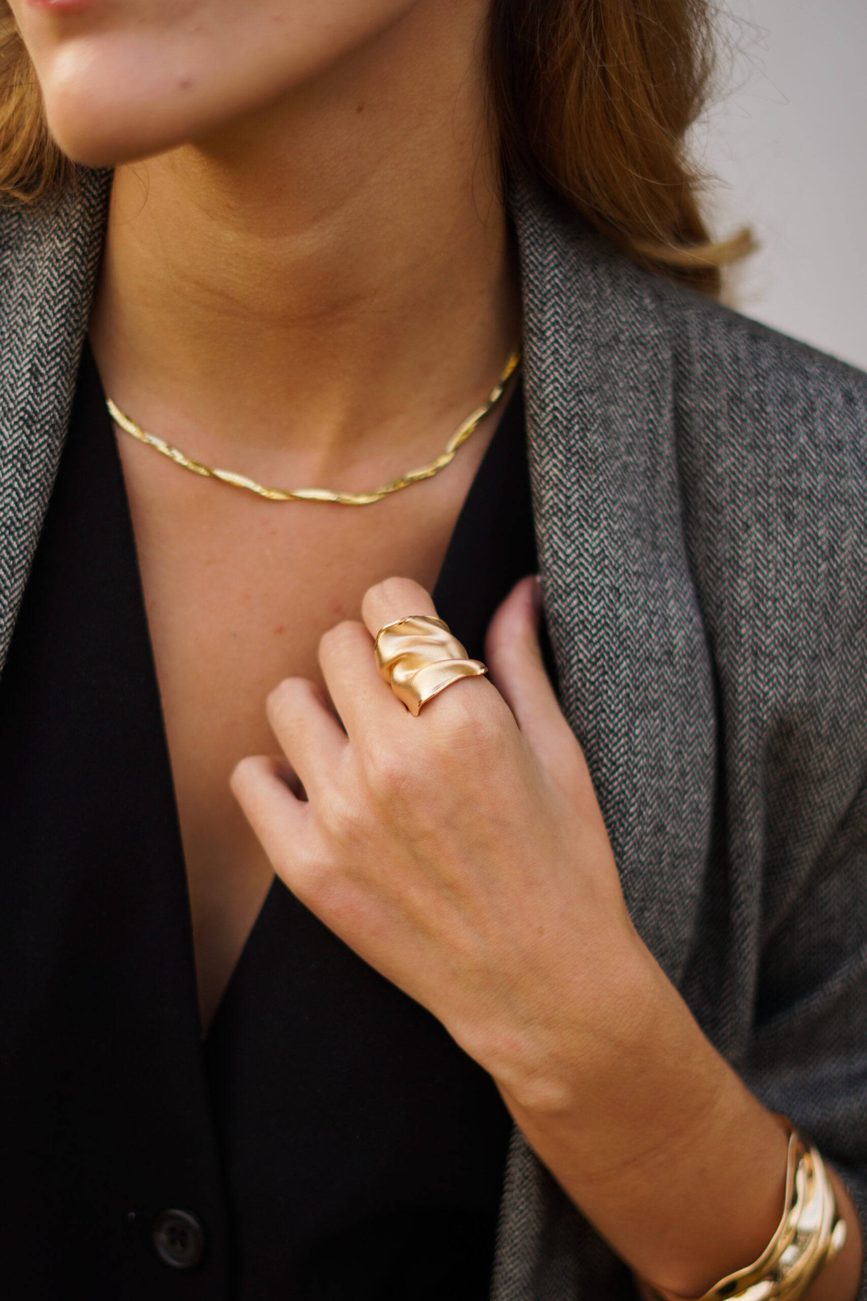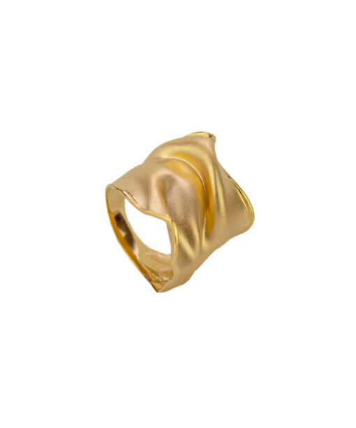 Anillo en plata de ley chapado en oro matizado con ondulaciones irregulares.