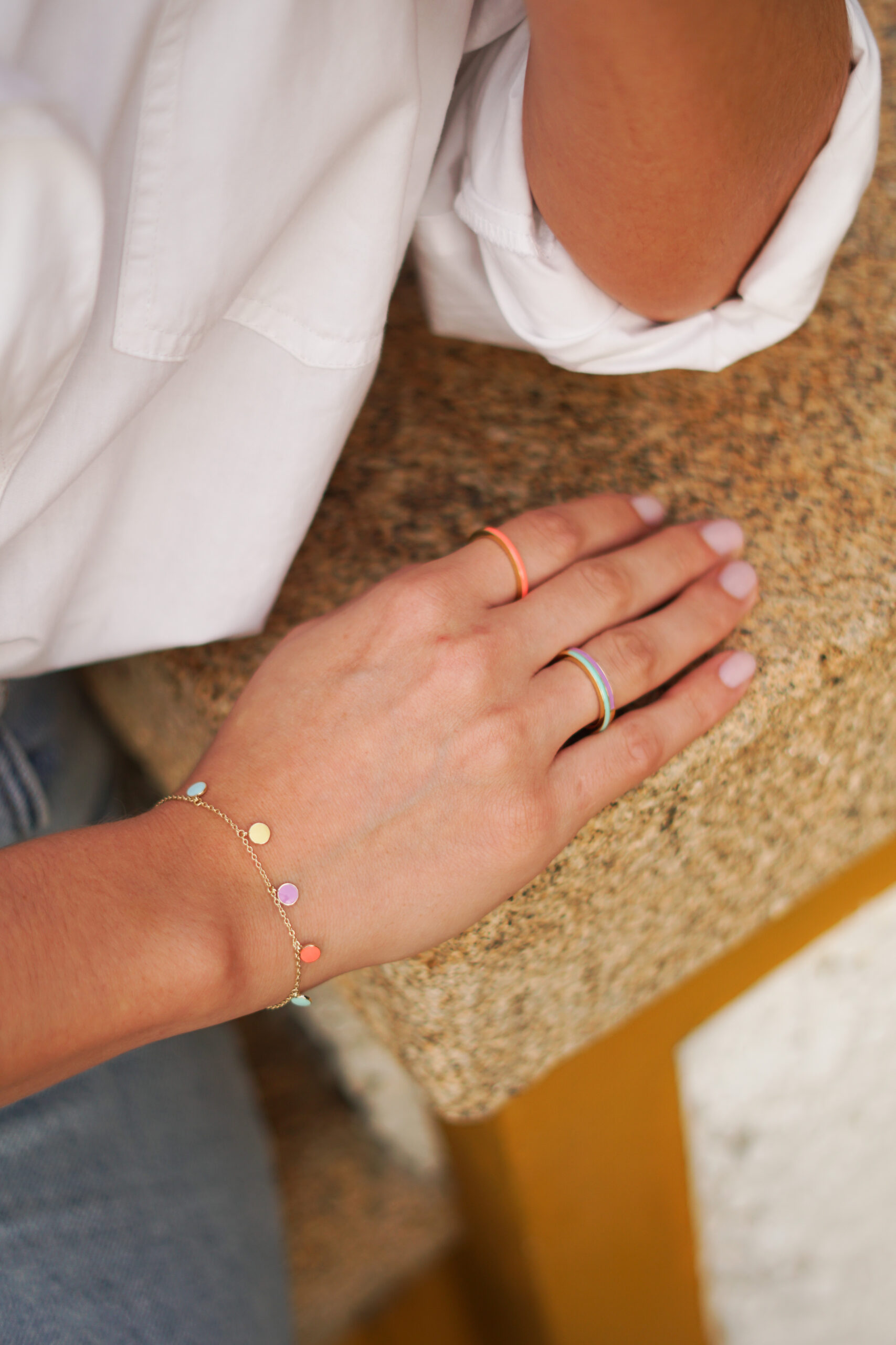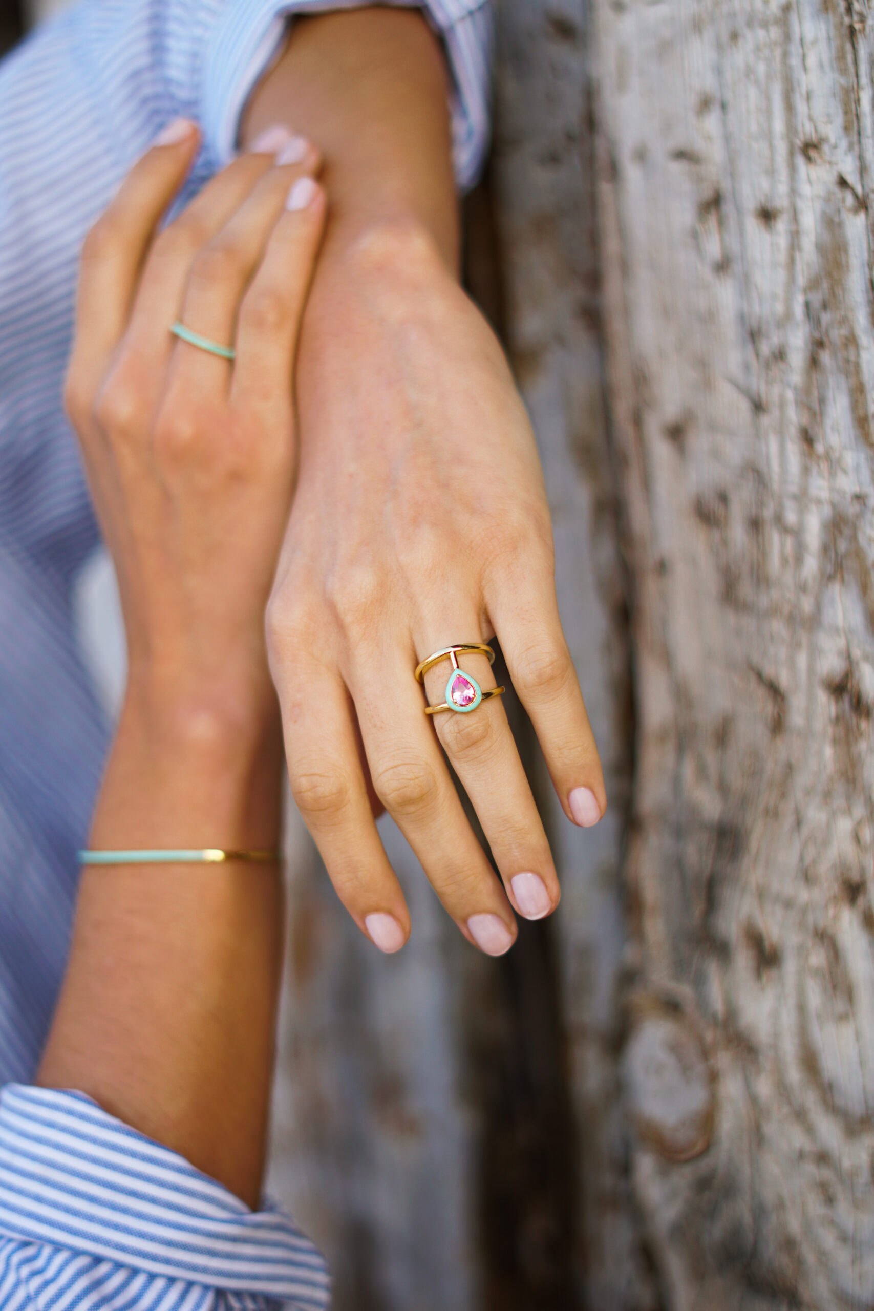 Anillo en plata de ley chapado en oro con esmalte verde agua.