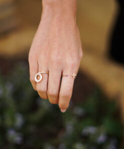 Anillo en plata de ley chapado en oro de forma irregular con esmalte blanco.