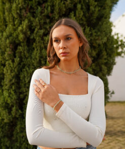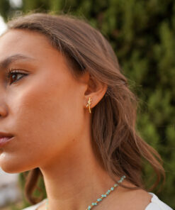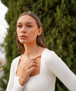 Collar en plata de ley chapado en oro con un trenzado de piedras amazonita en todo su recorrido.