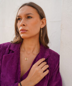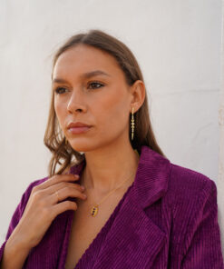 Collar en plata de ley chapado en oro con colgante en forma ovalada con un trío de piedras amatistas.