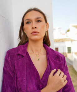 Collar en plata de ley chapado en oro con colgante en forma ovalada con un trío de piedras calcedonia.