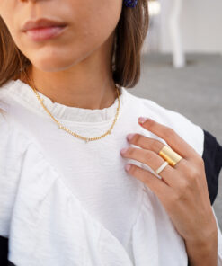Collar en plata de ley chapado en oro con cinco circonitas talla baguette separadas por tramos de cadena tipo barbada.