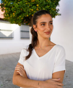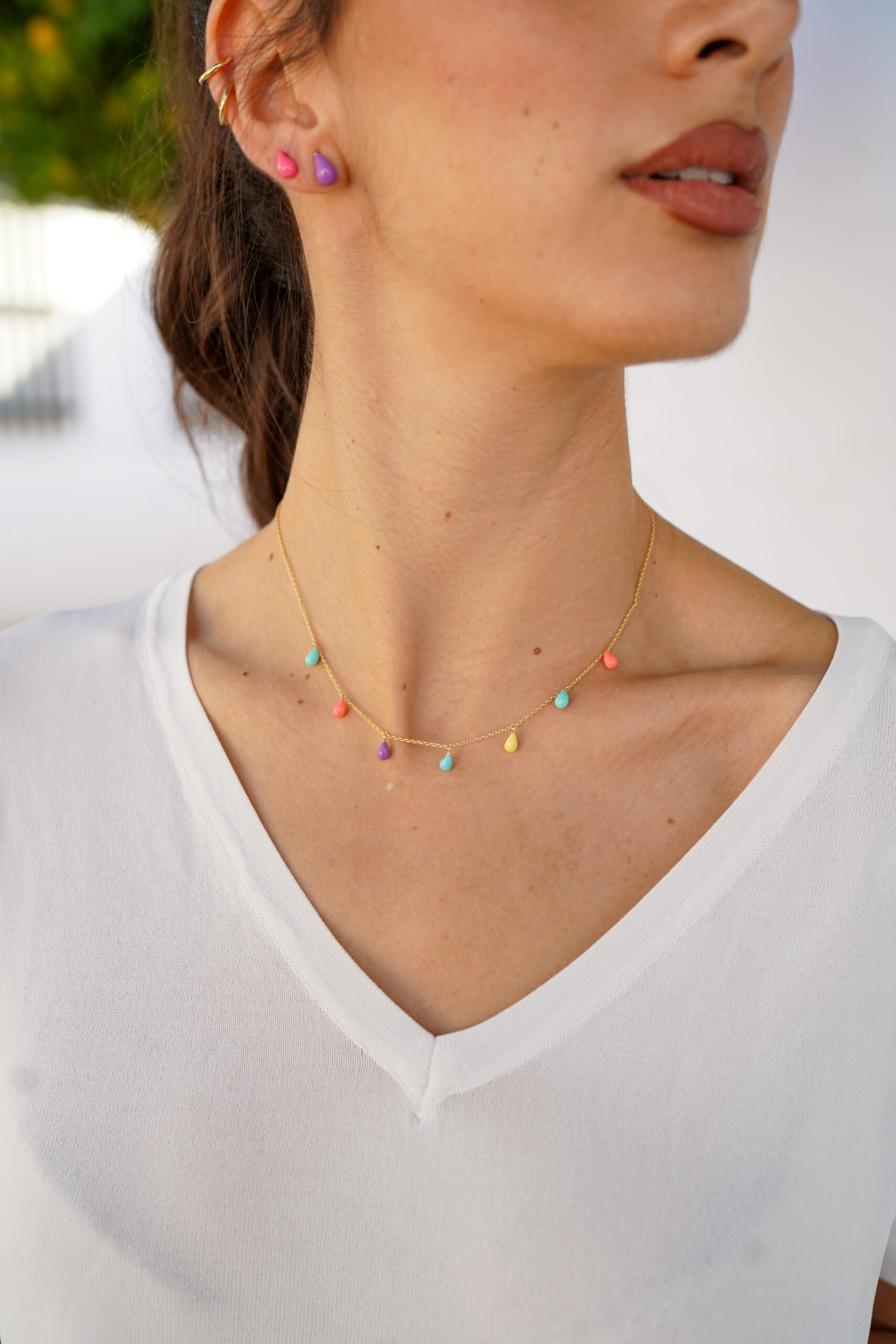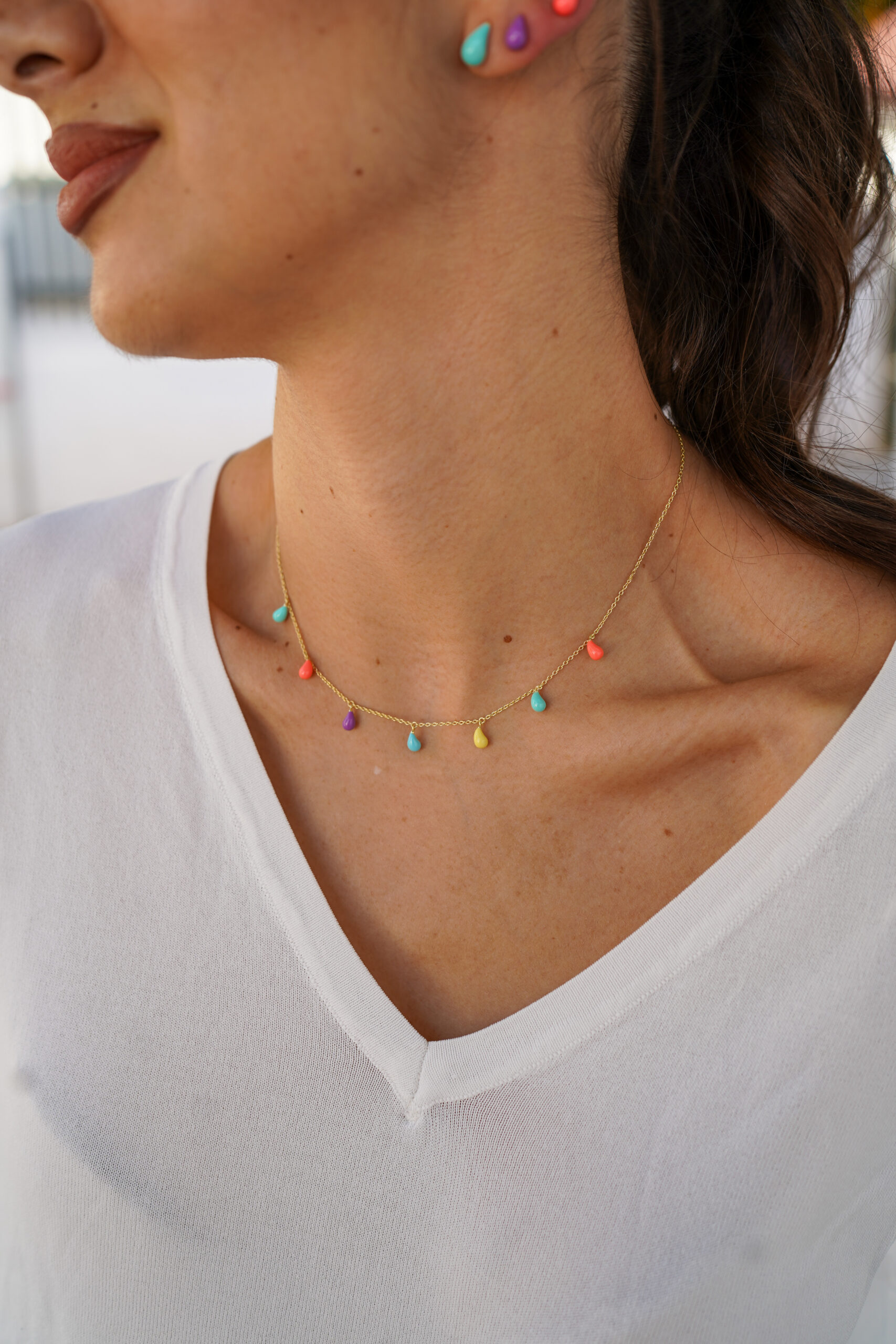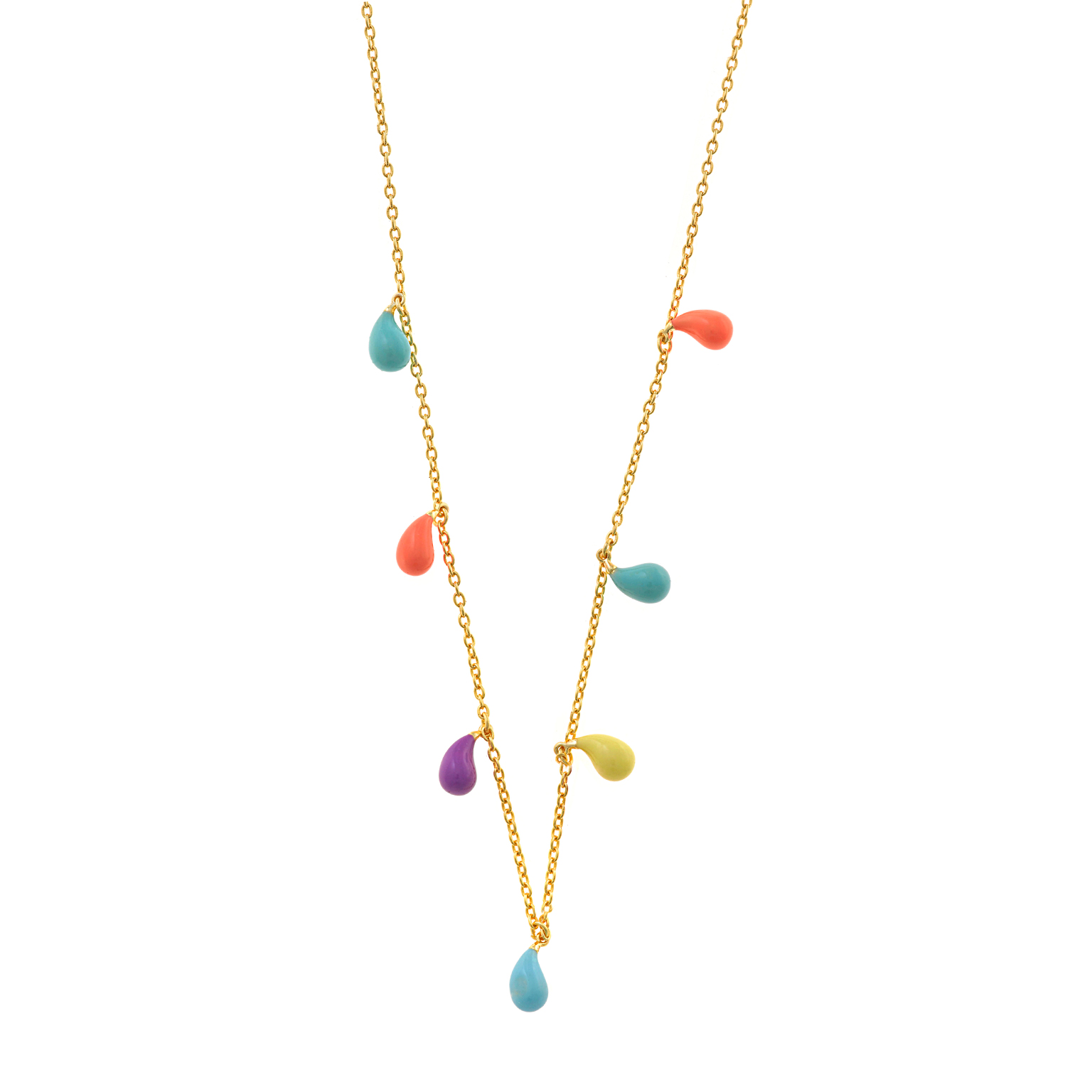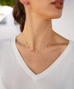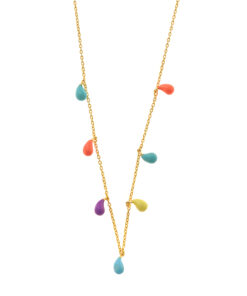 Collar en plata de ley chapado en oro con colgantes en forma de gotas de colores.