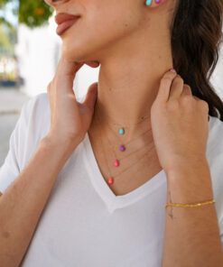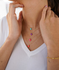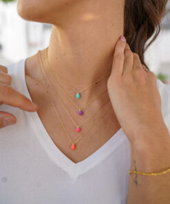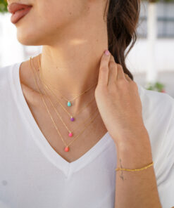 Collar en plata de ley chapado en oro con colgante en forma de gota de esmalte lila.