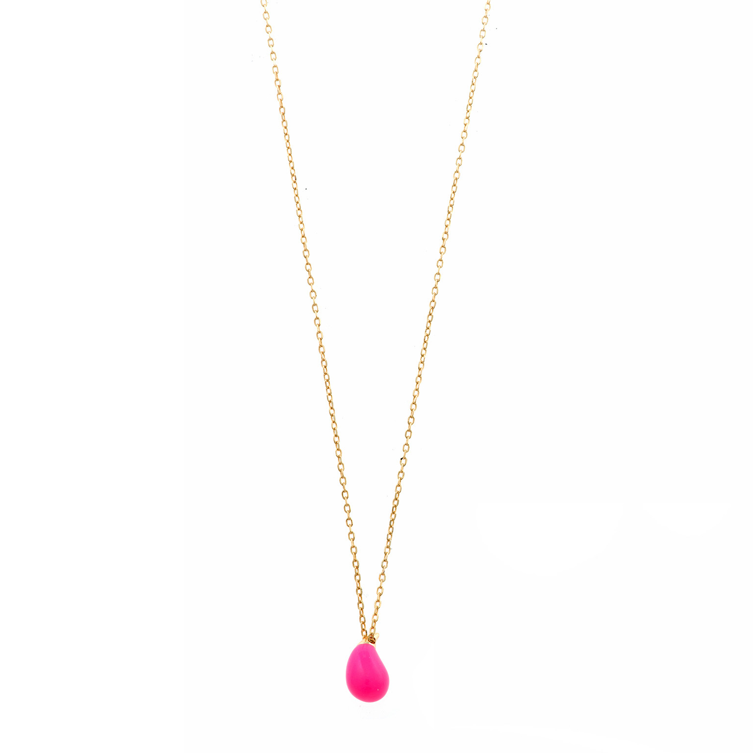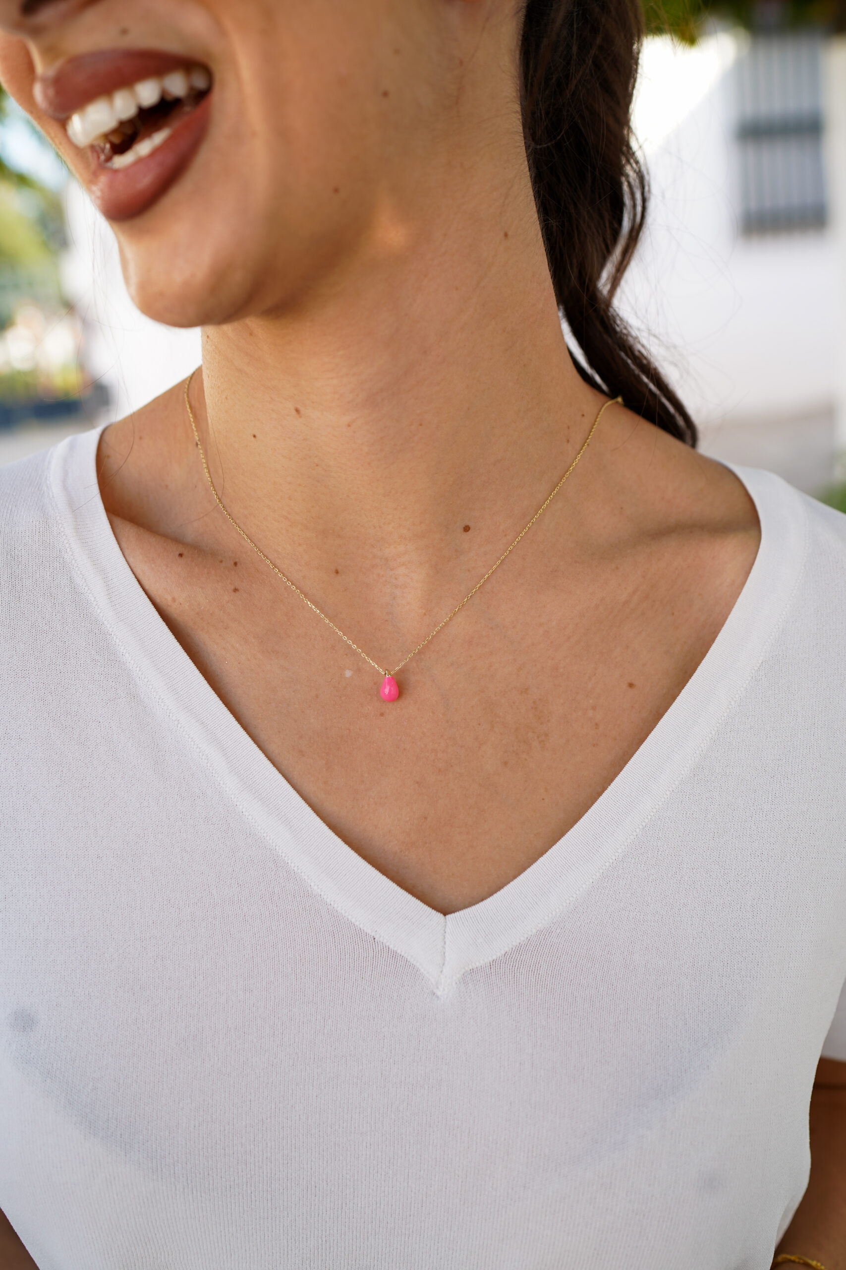 Collar en plata de ley chapado en oro con colgante en forma de gota de esmalte rosa.