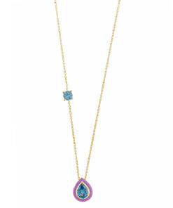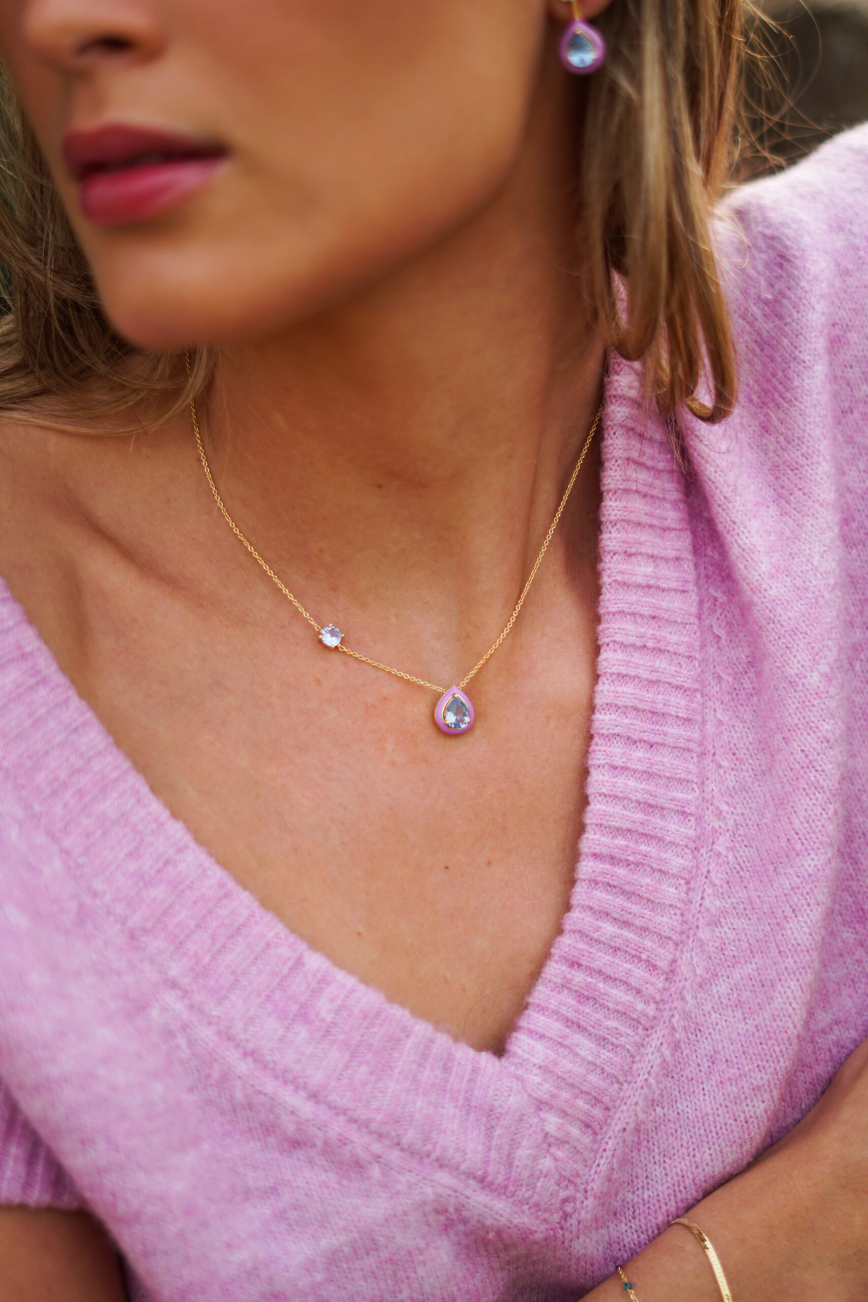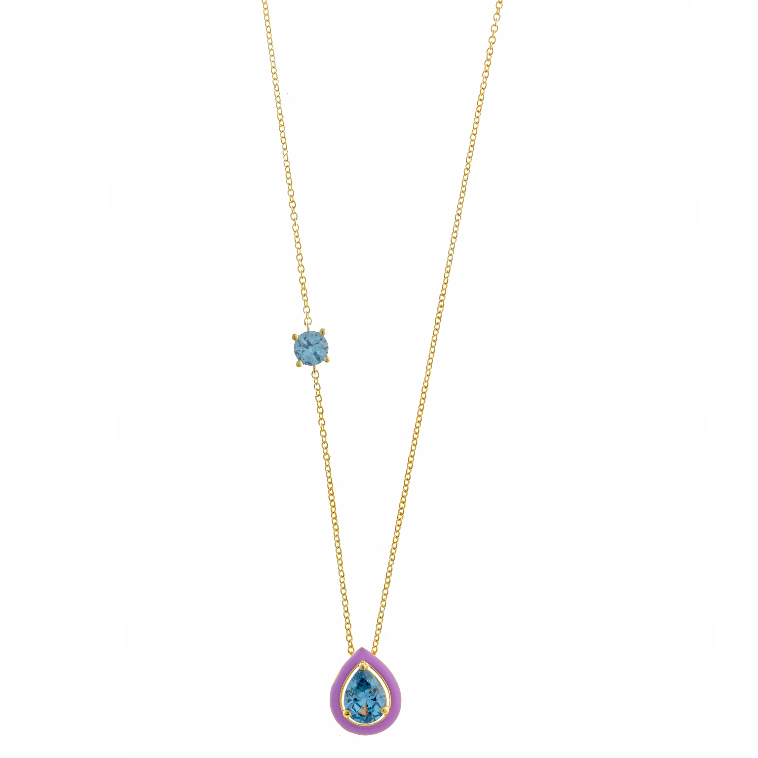 Collar en plata de ley chapado en oro con colgante en forma de gota de esmalte lila y circonita azul.