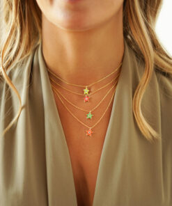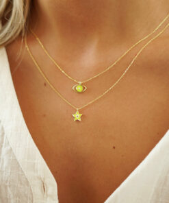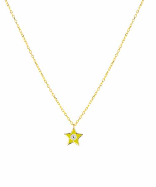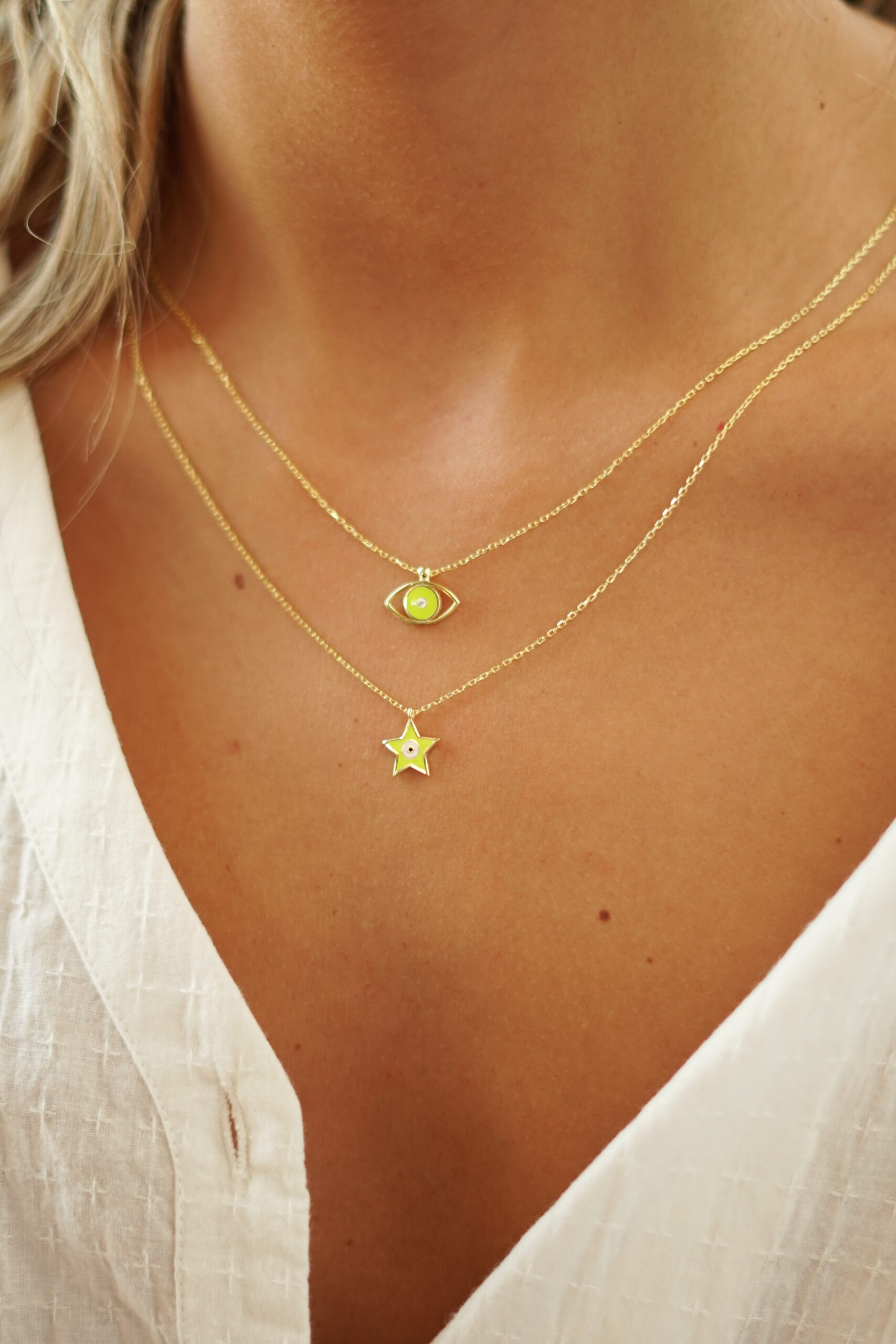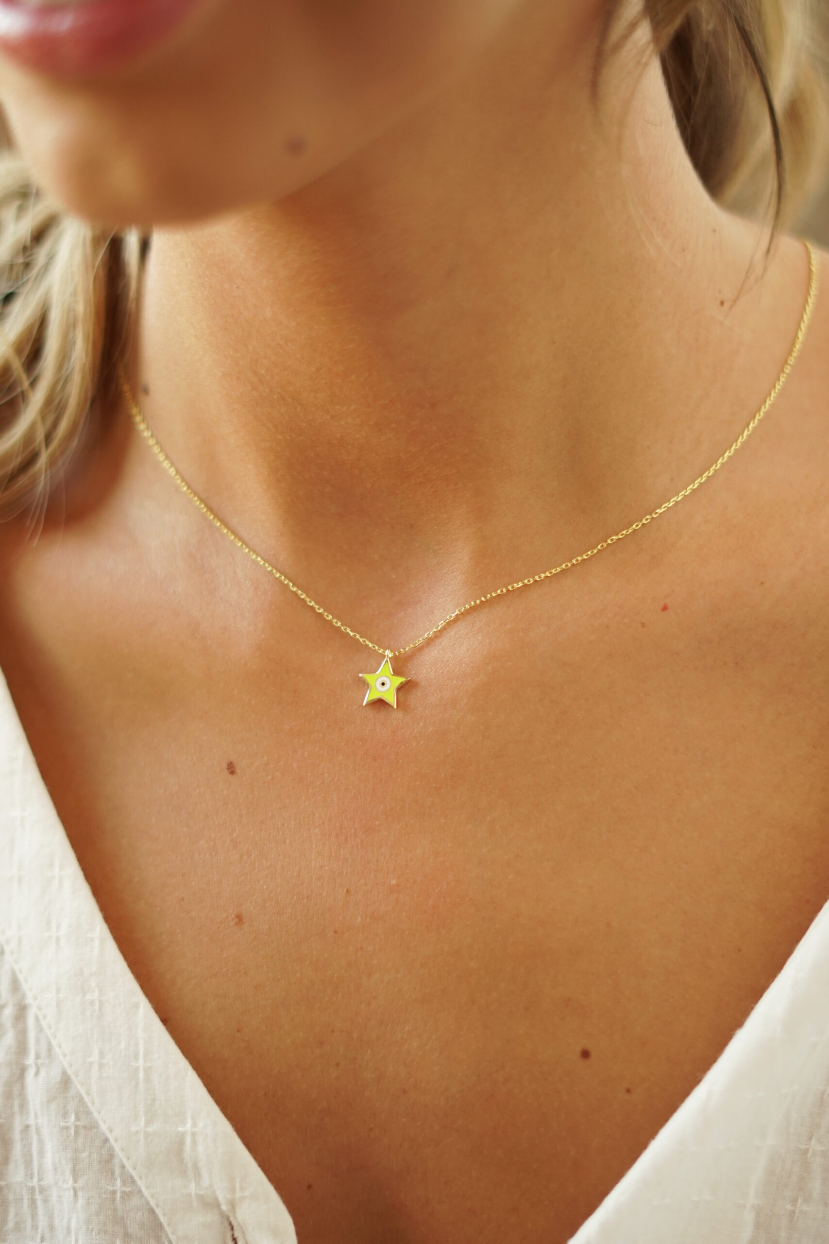 Collar en plata de ley chapado en oro con colgante de esmalte de color amarillo flúor en forma de estrella.