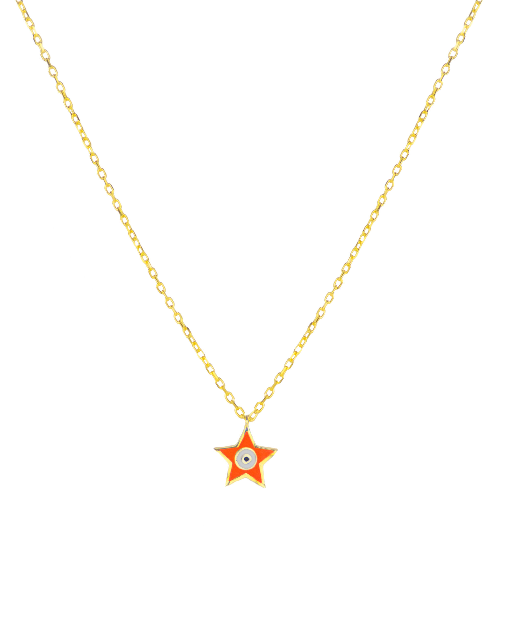 Collar en plata de ley chapado en oro con colgante de esmalte de color naranja flúor en forma de estrella.