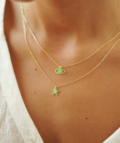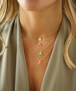 Collar en plata de ley chapado en oro con colgante de esmalte de color verde flúor en forma de estrella.