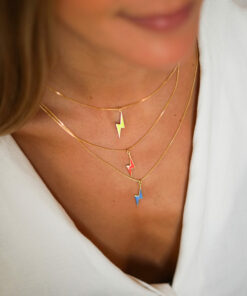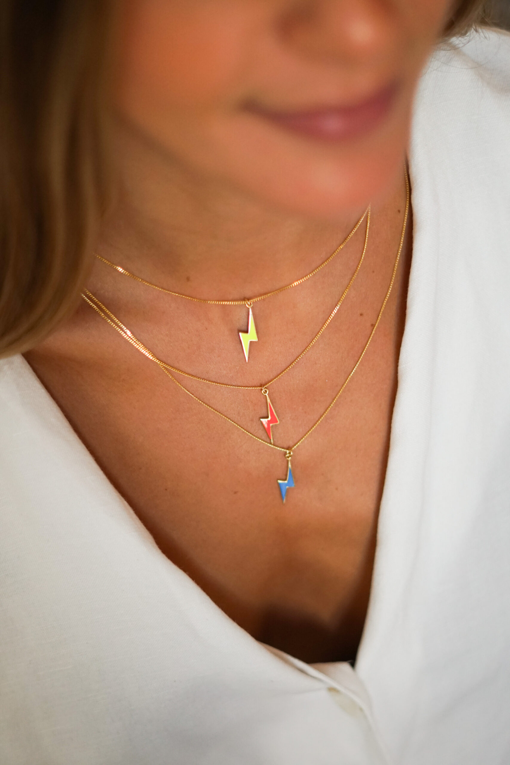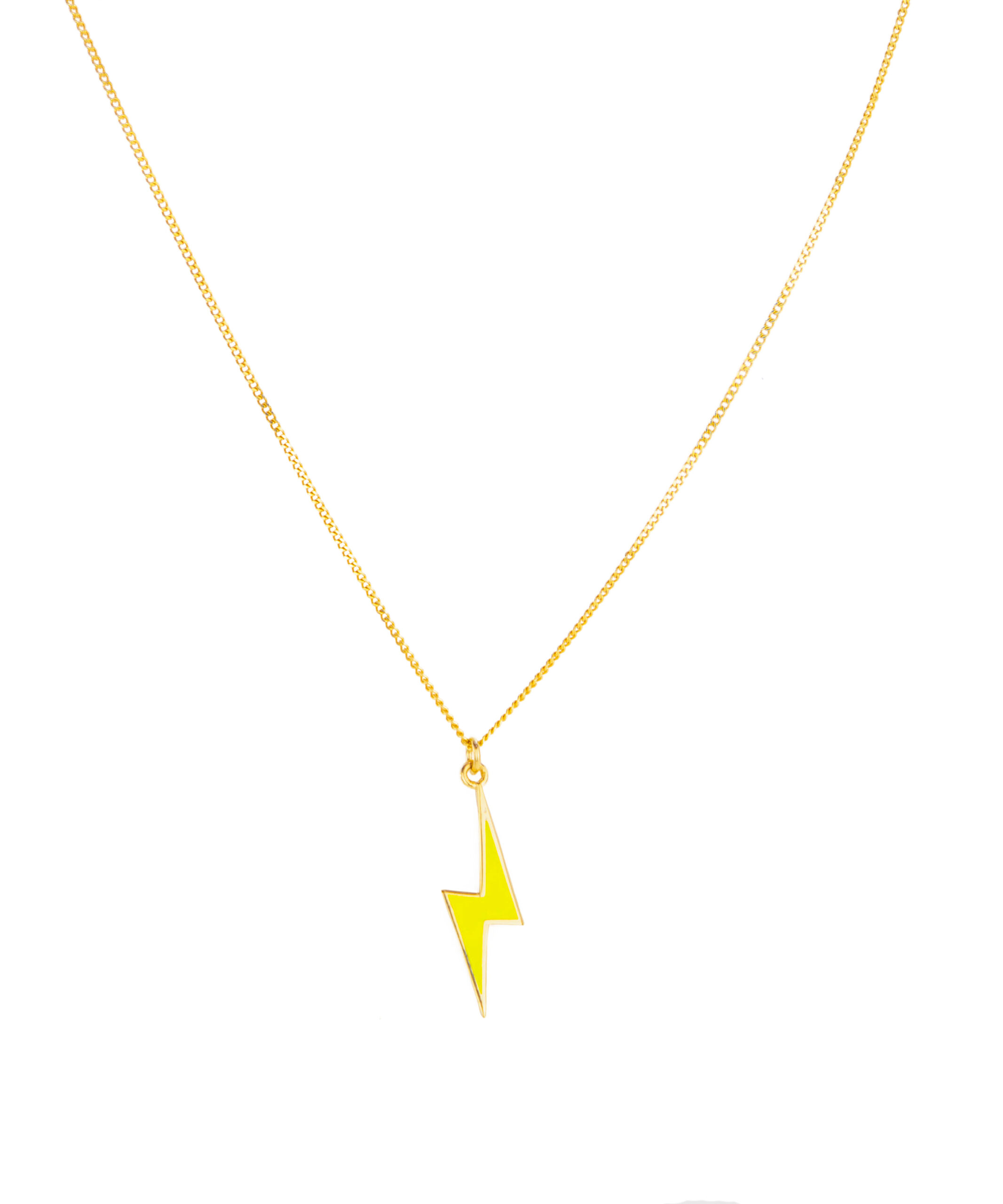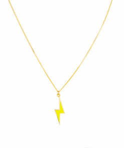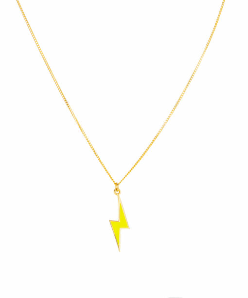 Collar en plata de ley chapado en oro con colgante en forma de rayo de esmalte amarillo flúor.