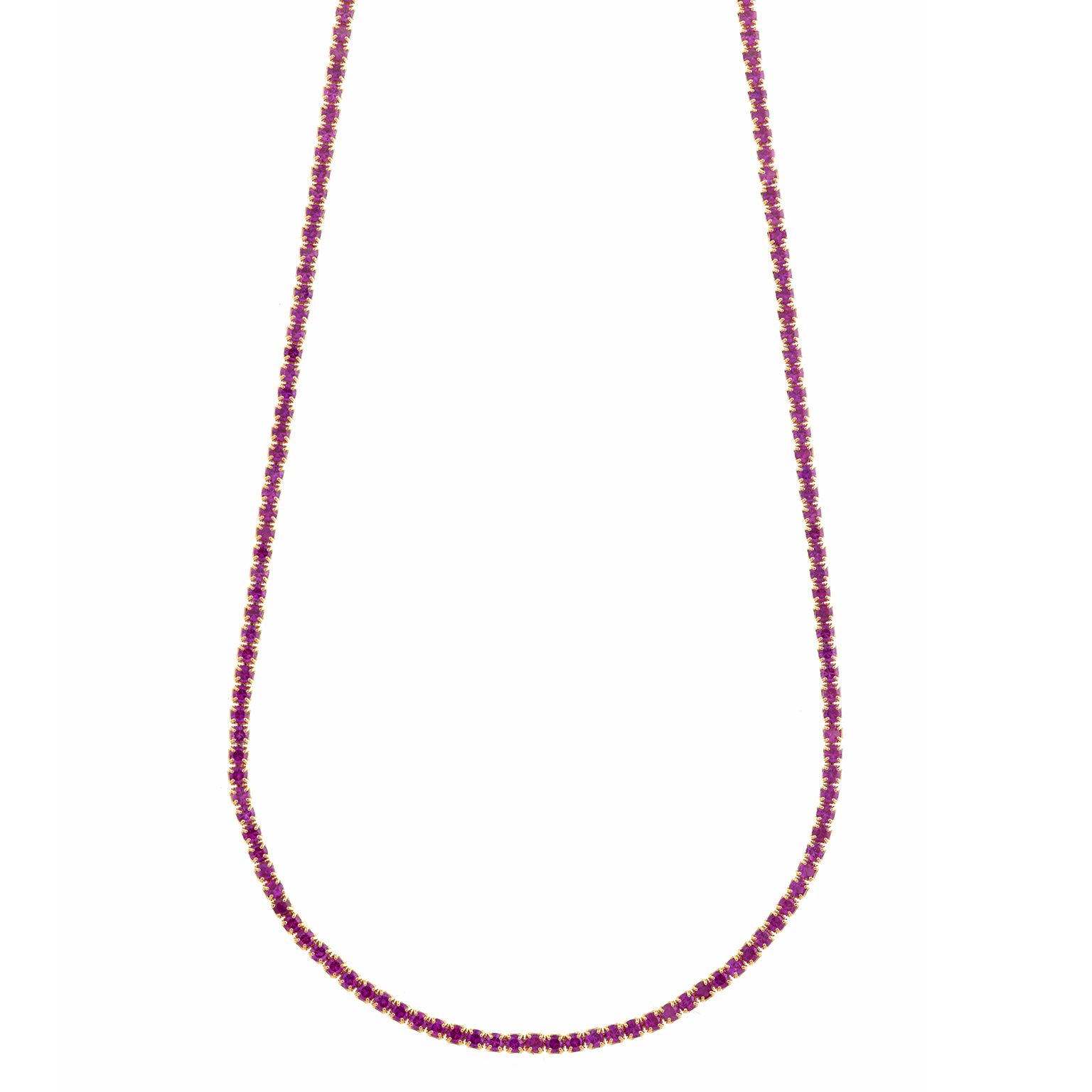 Collar en plata de ley chapado en oro formado en su totalidad por un riviere de circonitas color rosa.