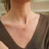 Collar en plata de ley chapado en oro con un delicado colgante en forma de Estrella de David, diseñado con líneas limpias y un acabado brillante que resalta su geometría y simbolismo. Ligero, elegante y lleno de significado, es una pieza que aporta sofisticación y carácter a cualquier conjunto.