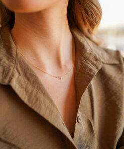Collar en plata de ley chapado en oro con circonita baguette y turquesa pequeña colgando.