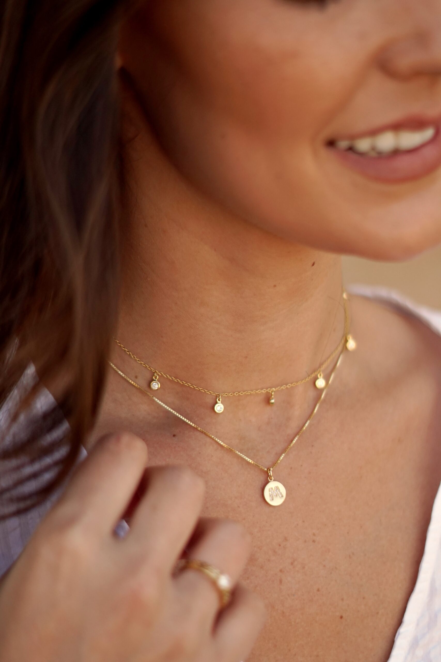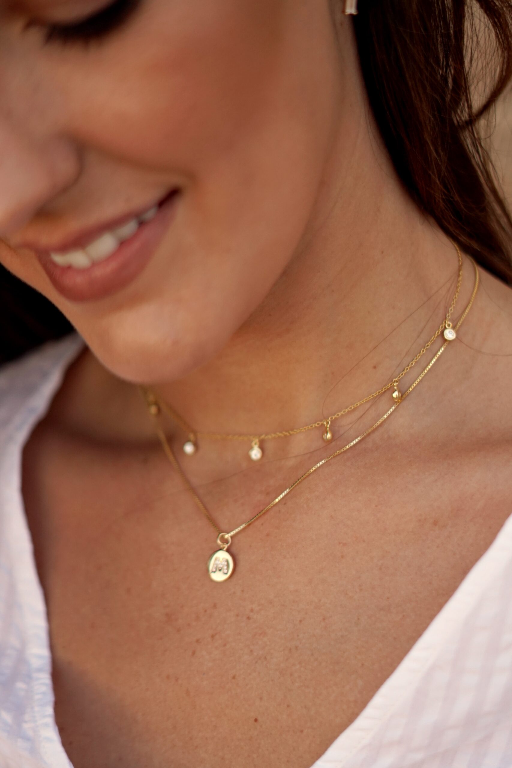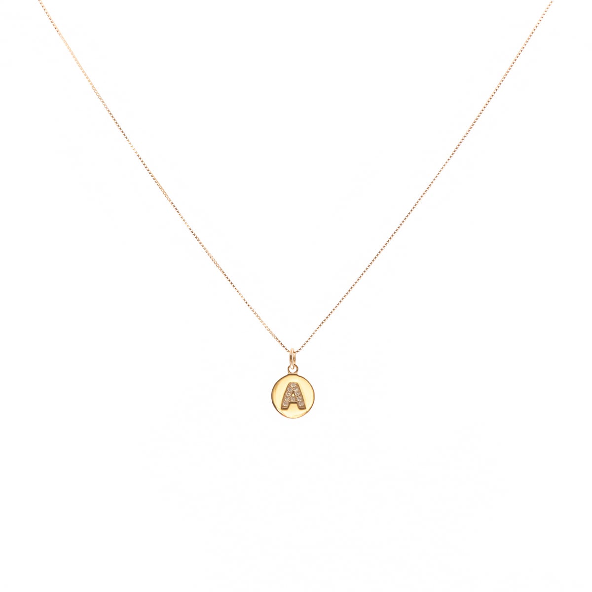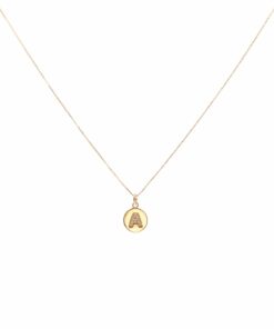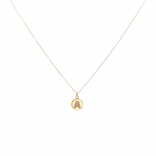 Collar en plata de ley chapado en oro con colgante circular y letra de circonitas