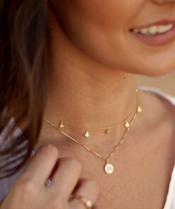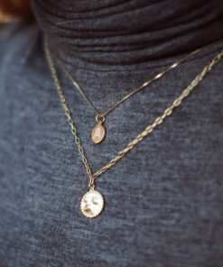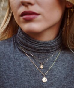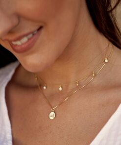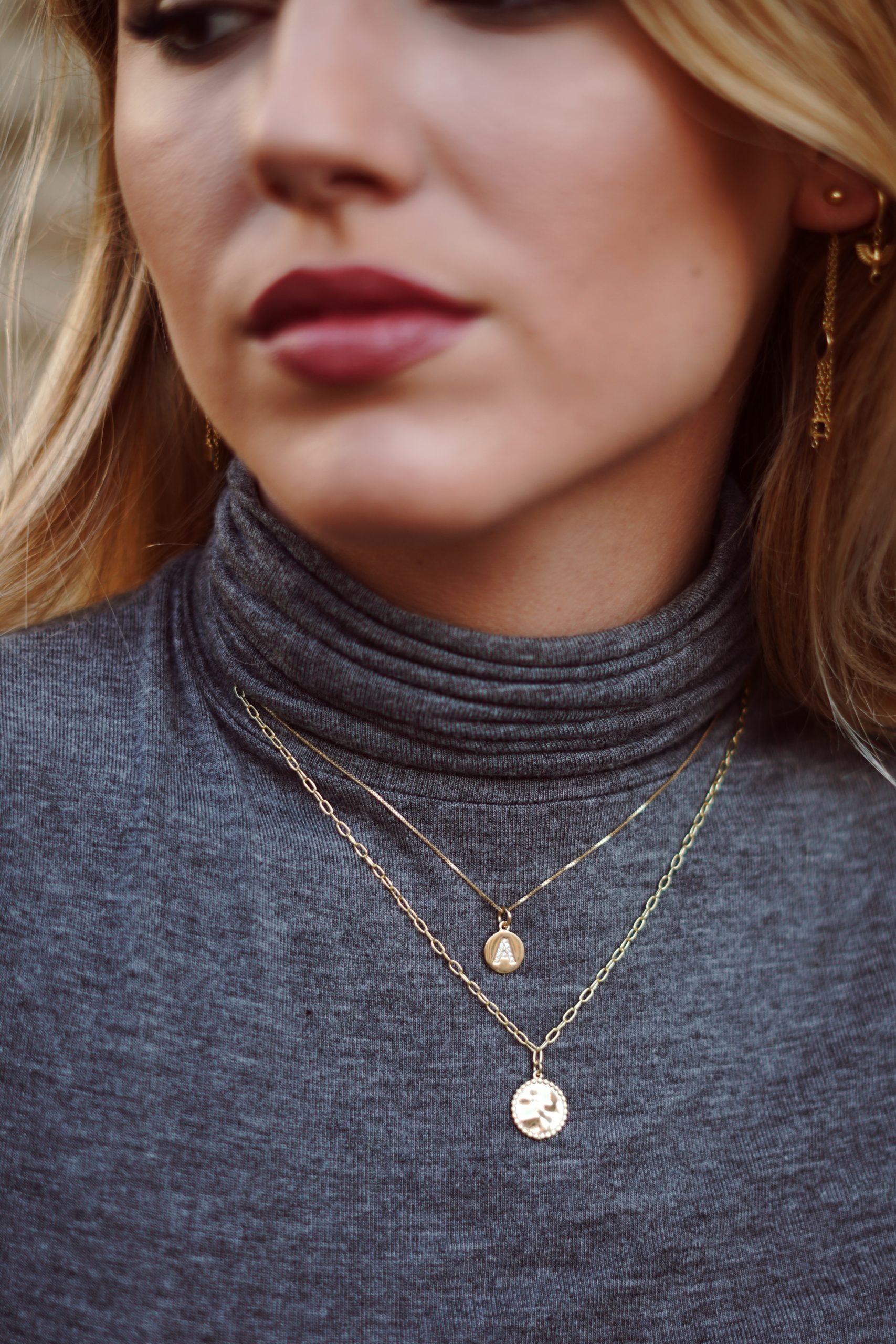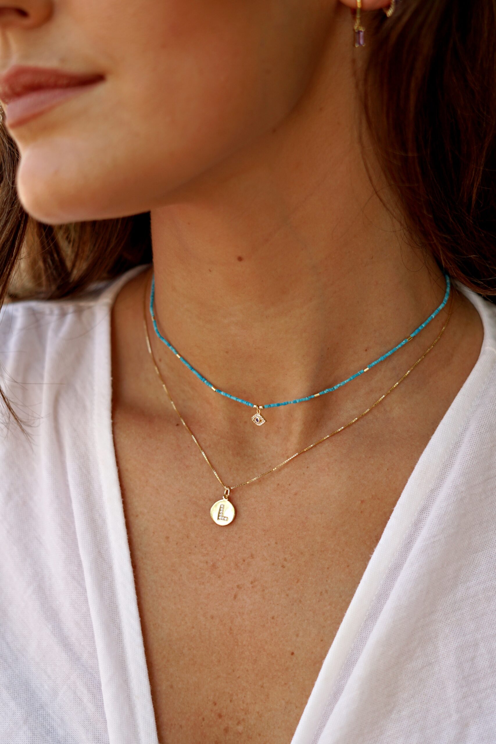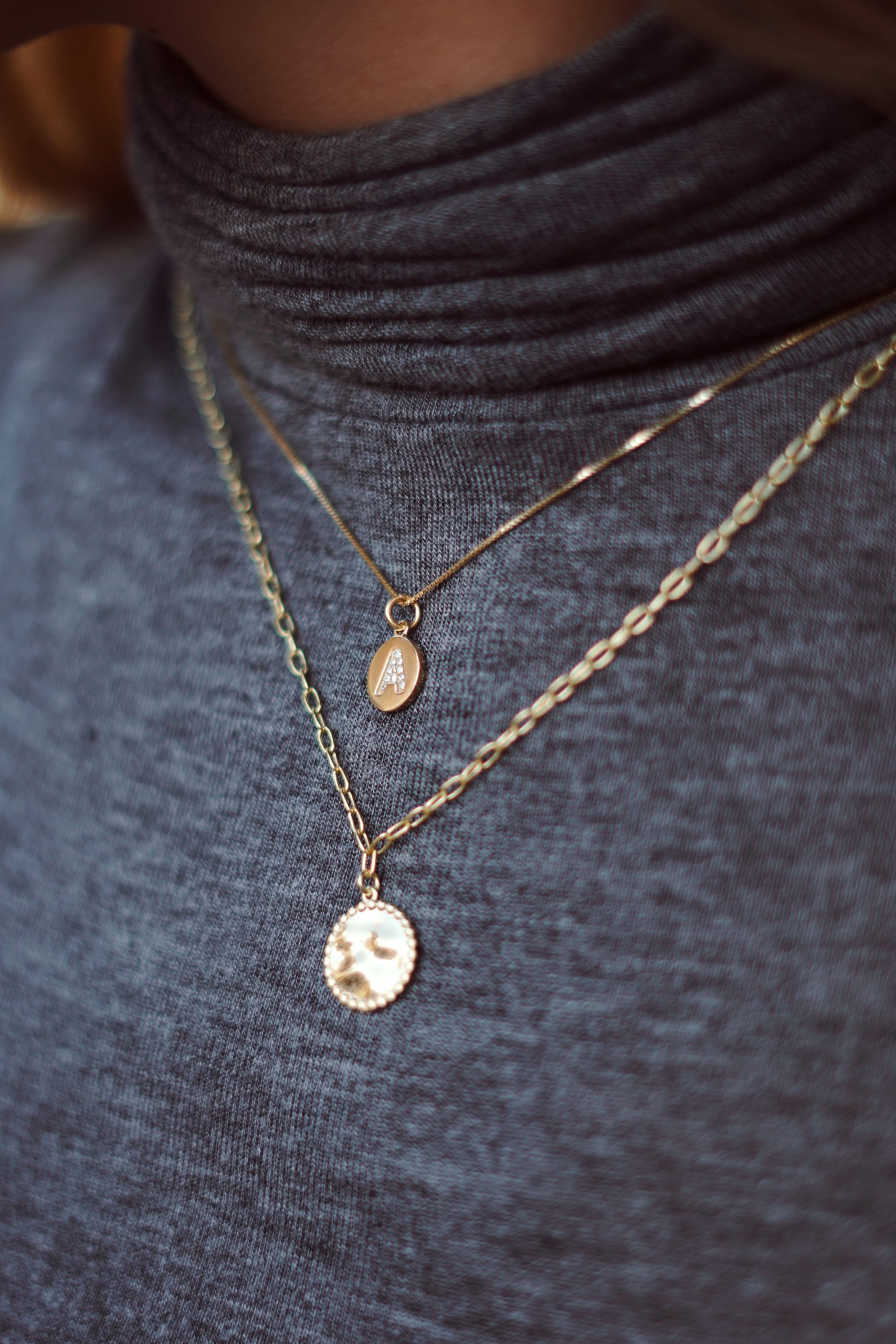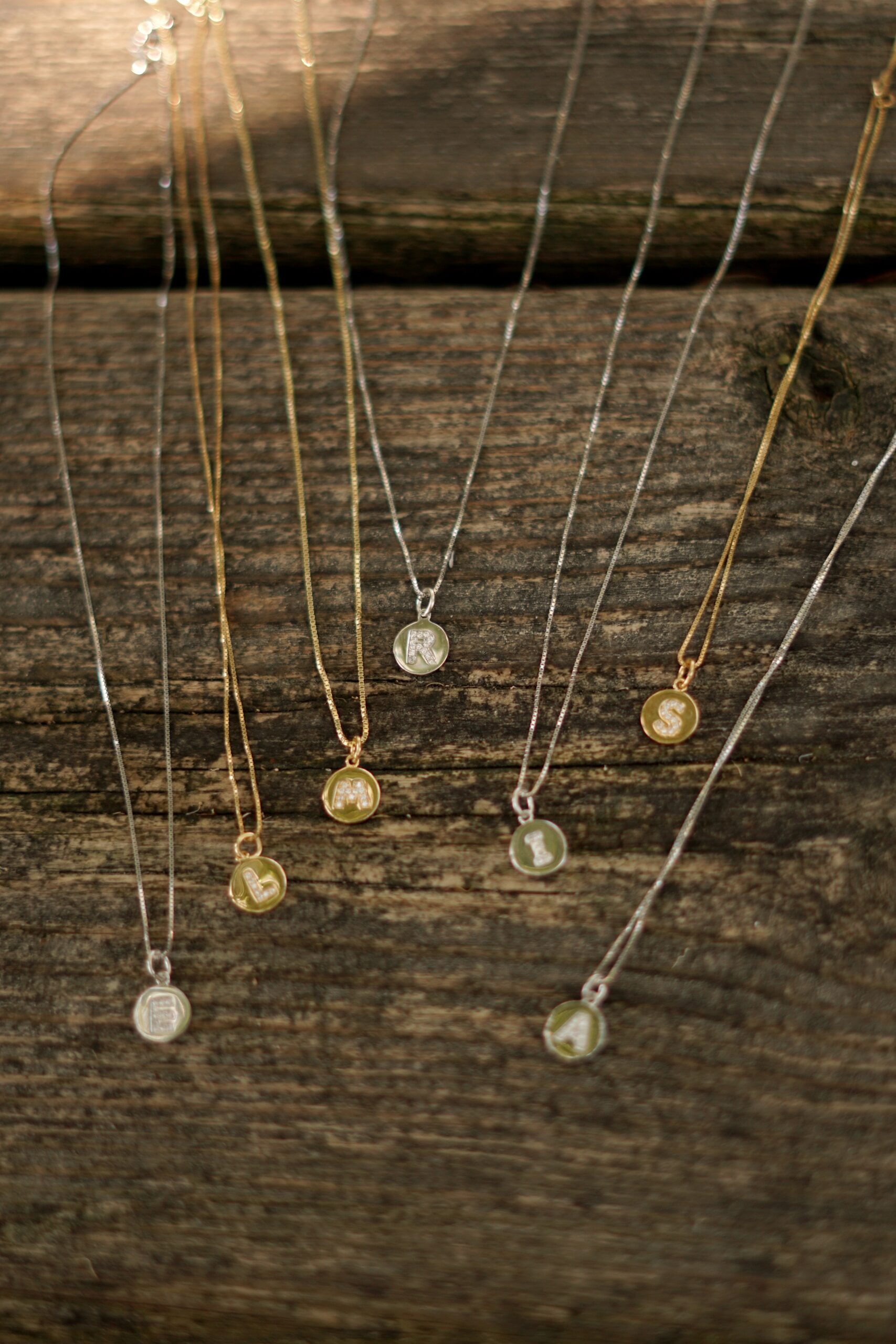Collar en plata de ley chapado en oro con colgante circular y letra de circonitas