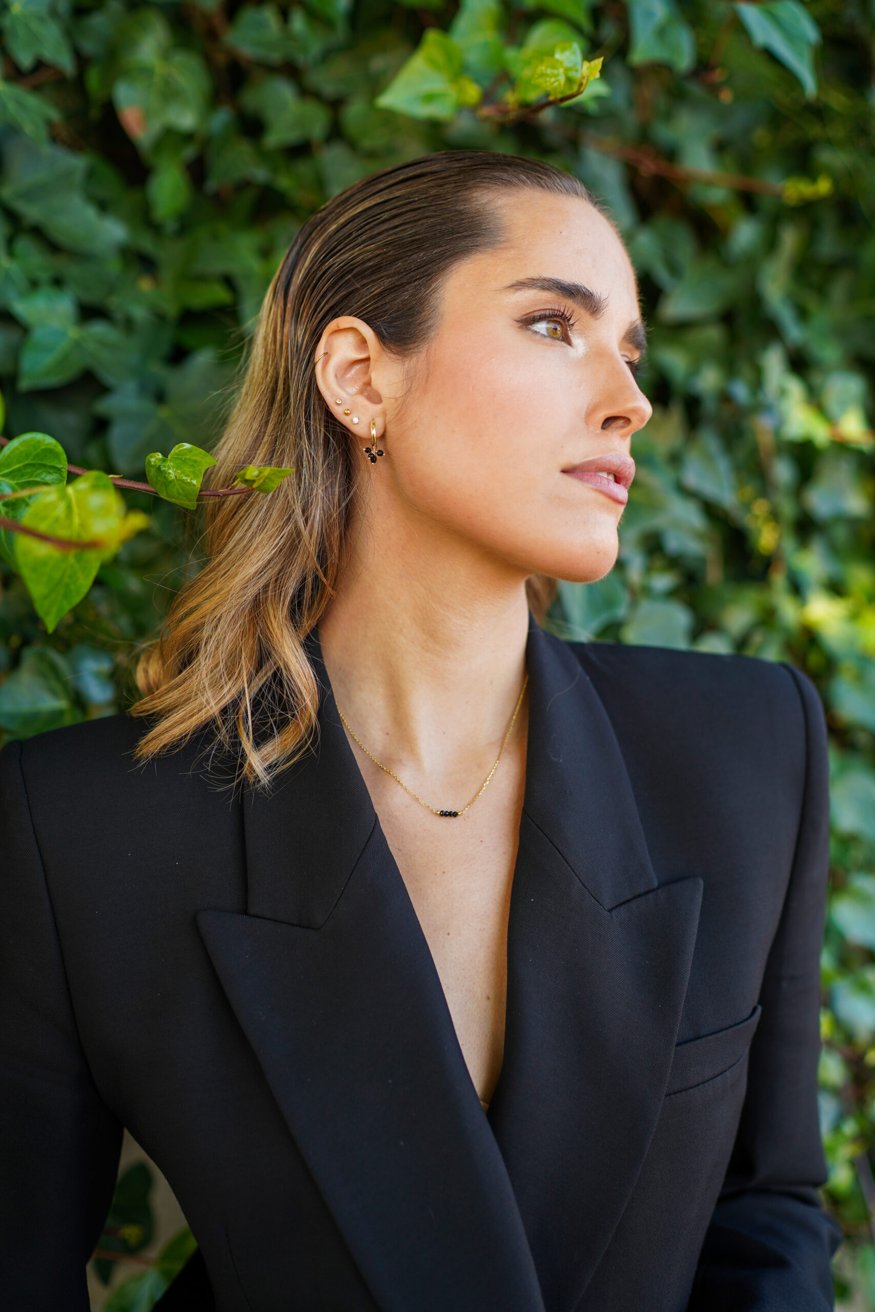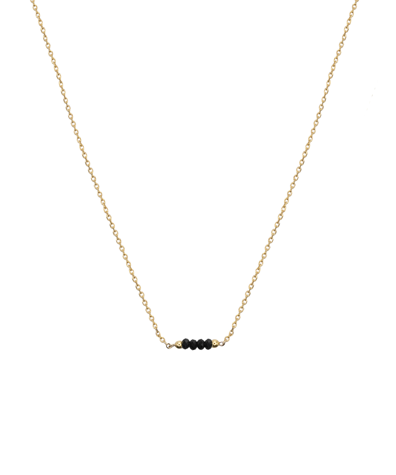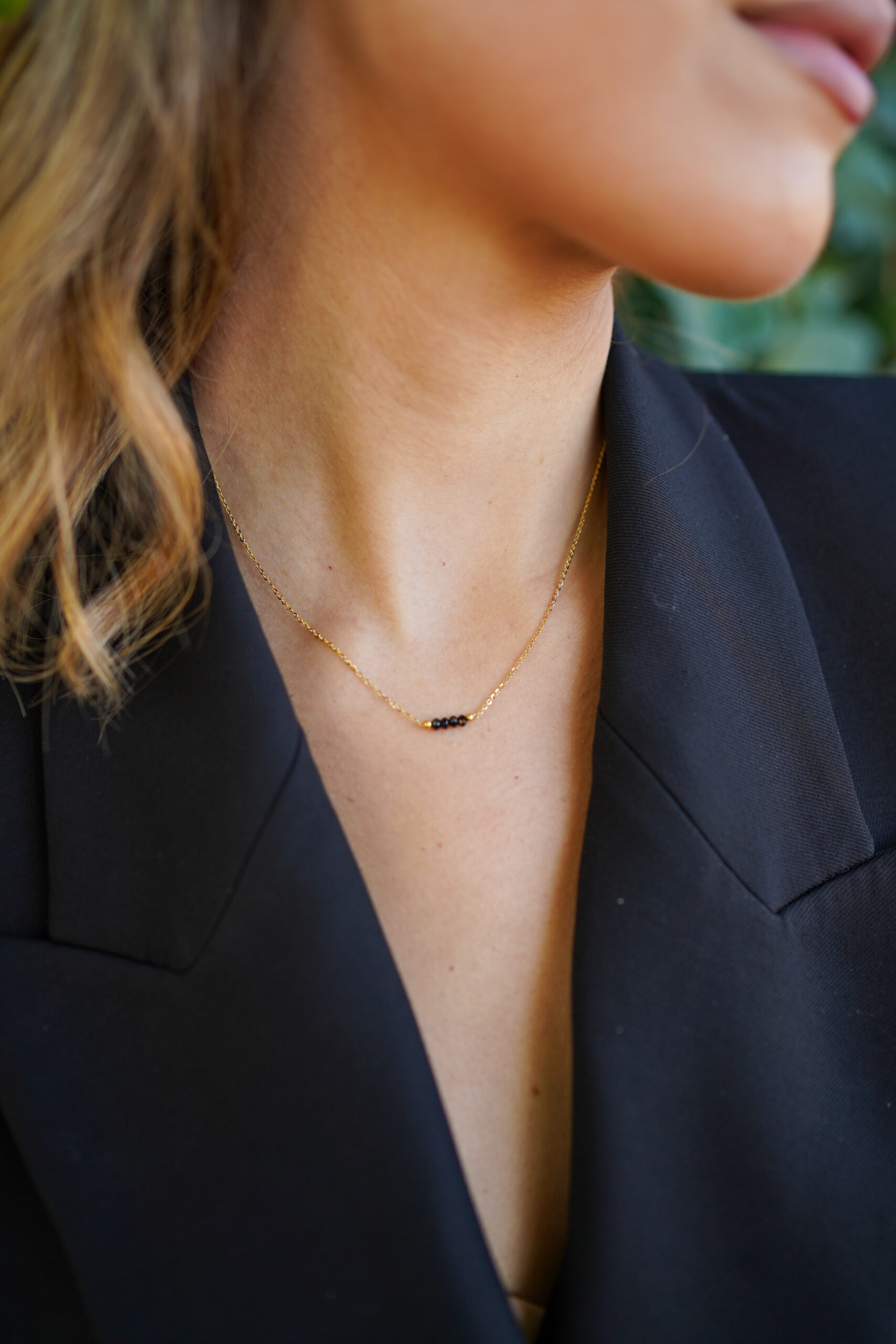 Collar en plata de ley chapado en oro con cuatro piedras ónix engarzadas en la cadena.