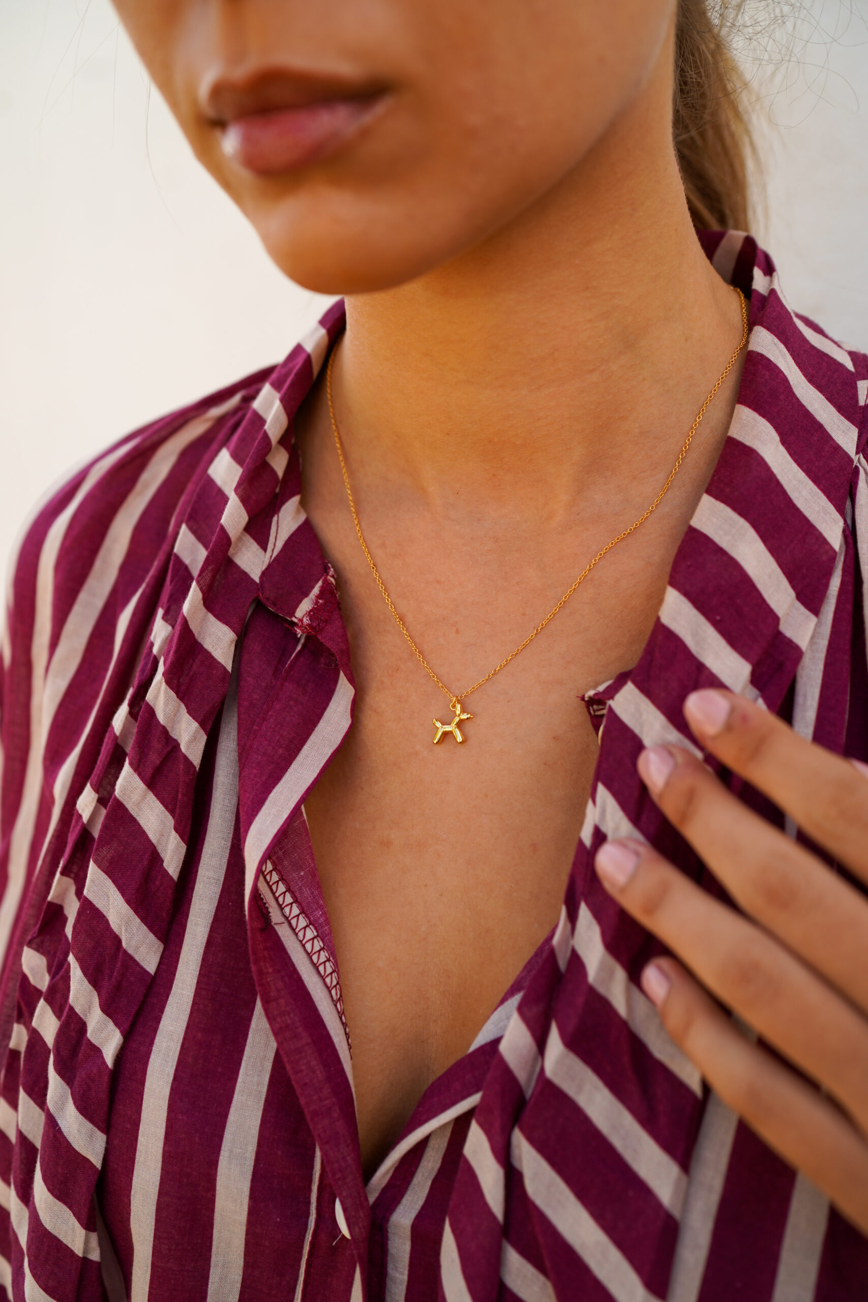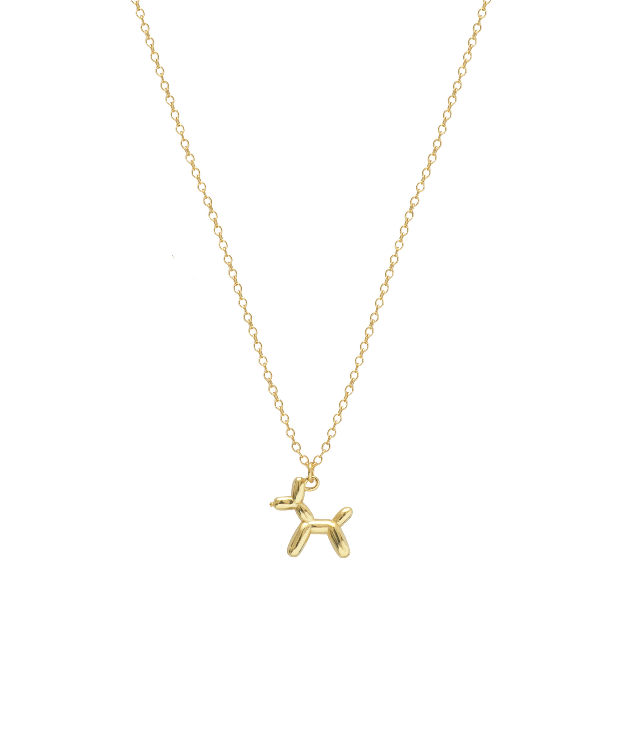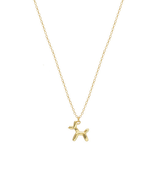 Collar en plata de ley chapado en oro con colgante en forma de perro de globos.