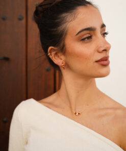 Collar en plata de ley chapado en oro con colgante formado por dos piedras de jaspe rojo natural y dos piedras de cuarzo rosa.