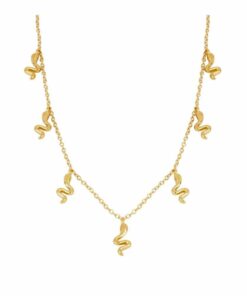 Collar en plata de ley chapado en oro con siete colgantes en forma de serpientes