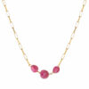 Collar en plata de ley chapado en oro con tres piedras aguamarina natural sobre una cadena de eslabones.