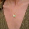 Collar en plata de ley chapado en oro, diseñado con un colgante circular en forma de sol radiante. Cada uno de sus rayos está delicadamente engastado con circonitas blancas que aportan brillo y una luz elegante y atemporal. Una pieza equilibrada, minimalista y luminosa, perfecta para llevar sola o combinar en capas.