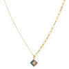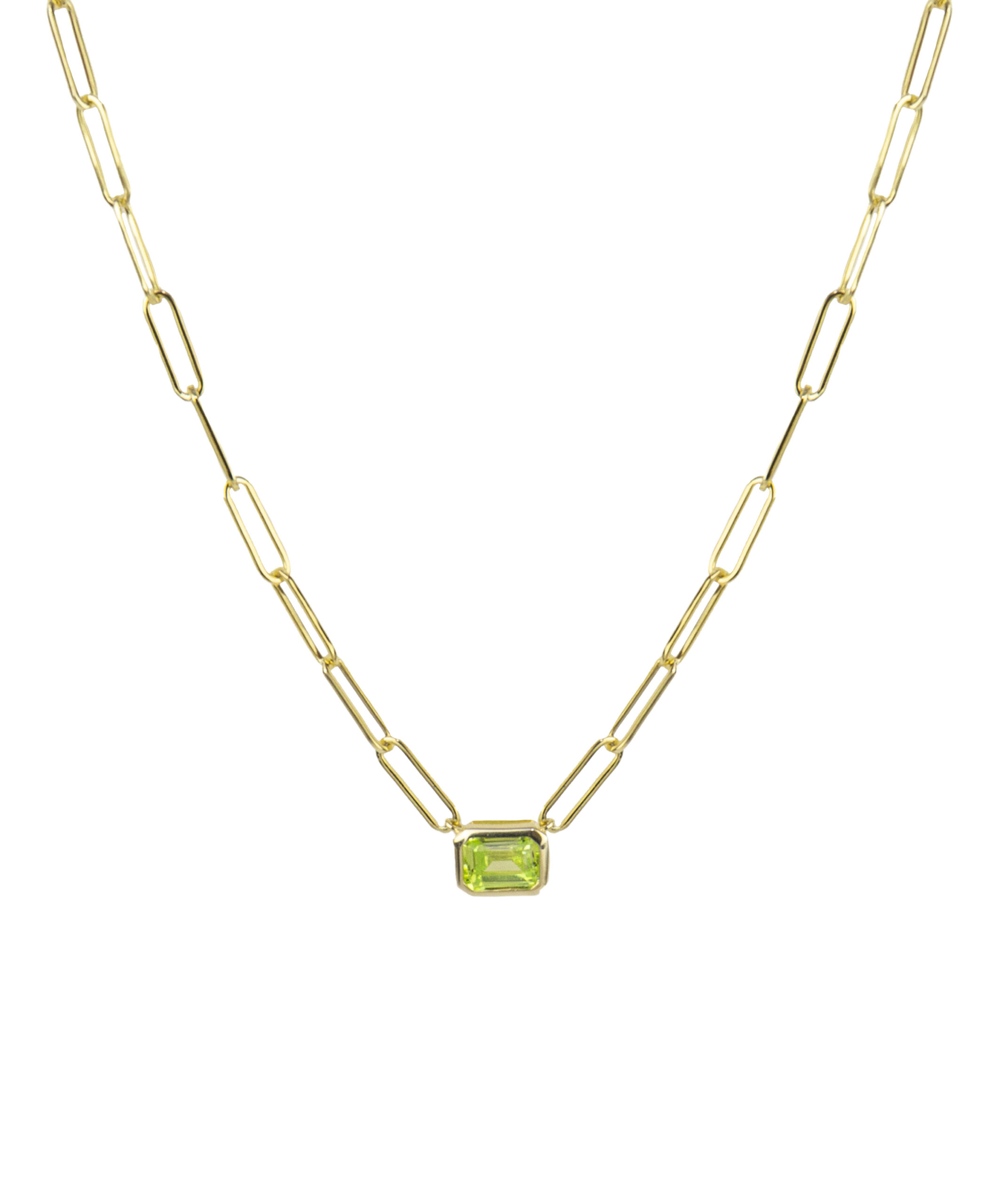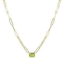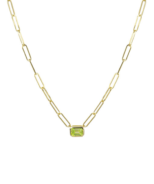 Collar de eslabones en plata de ley chapado en oro con cuarzo adamantino verde manzana de forma rectangular.
