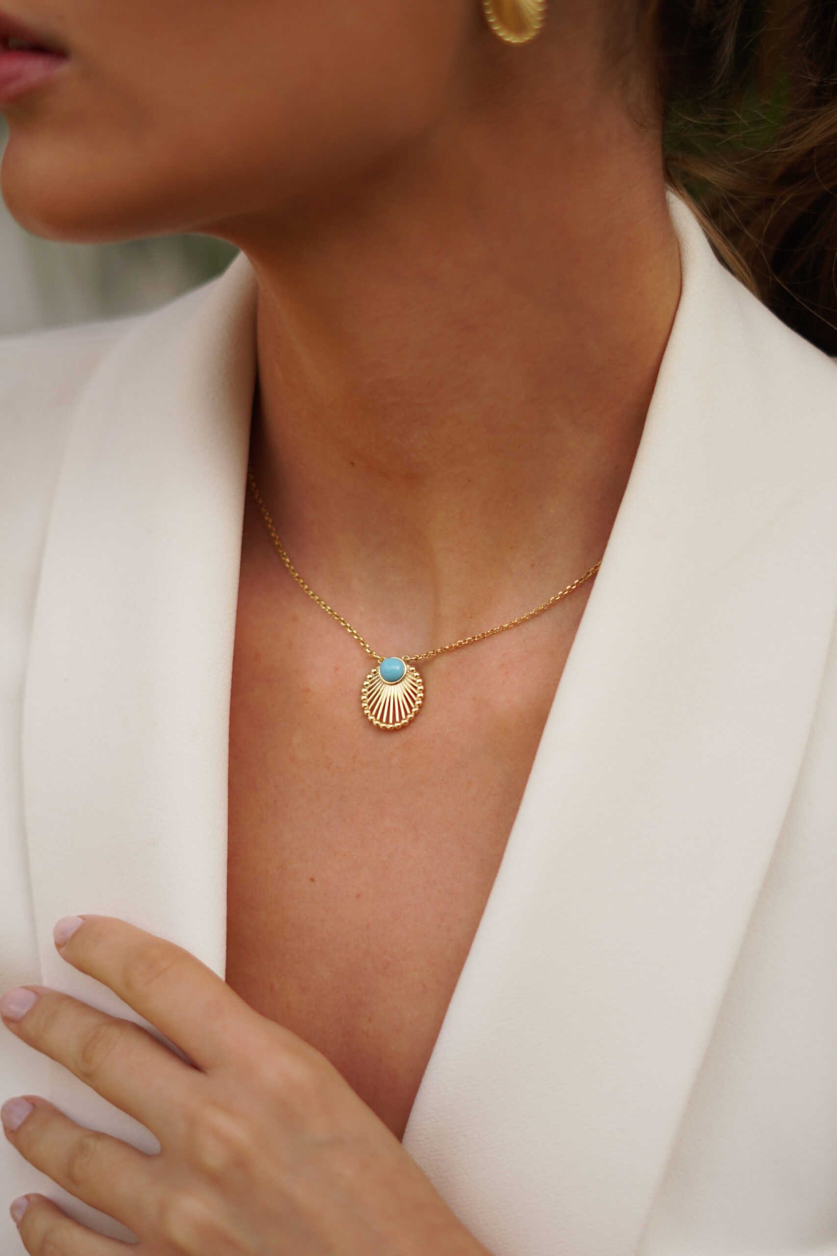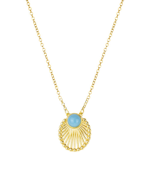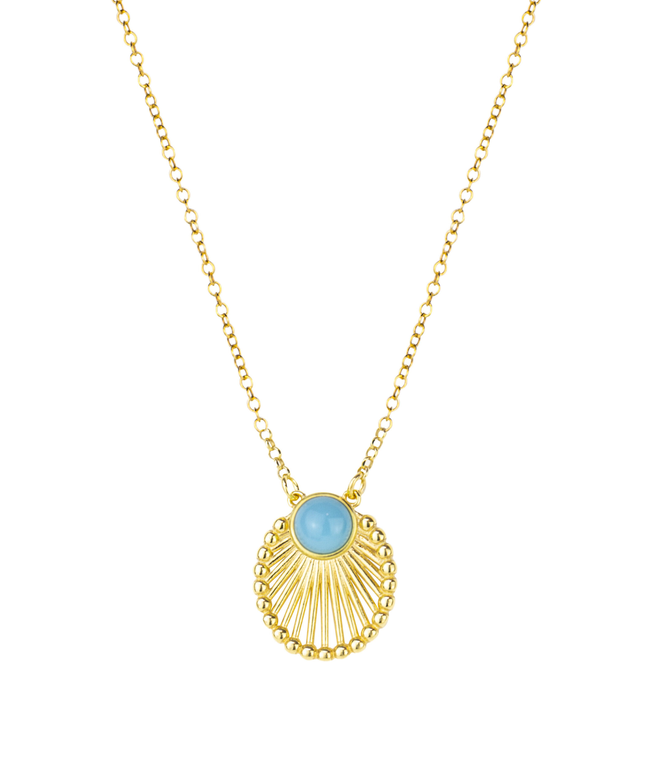 Collar en plata de ley chapado en oro con colgante de forma oval con turquesa.