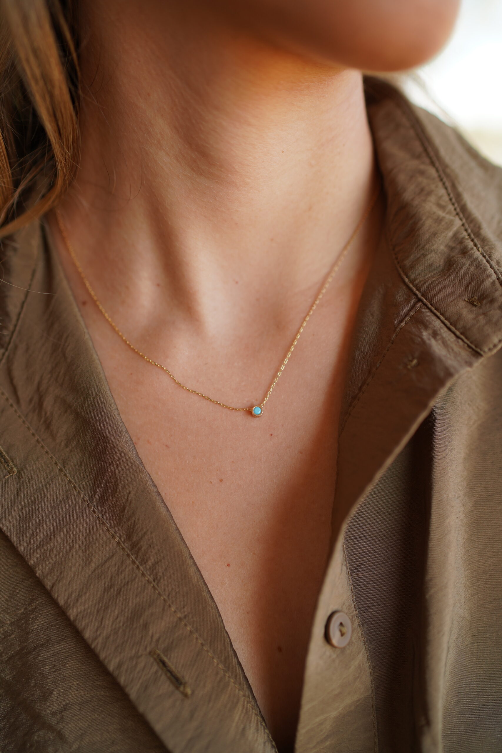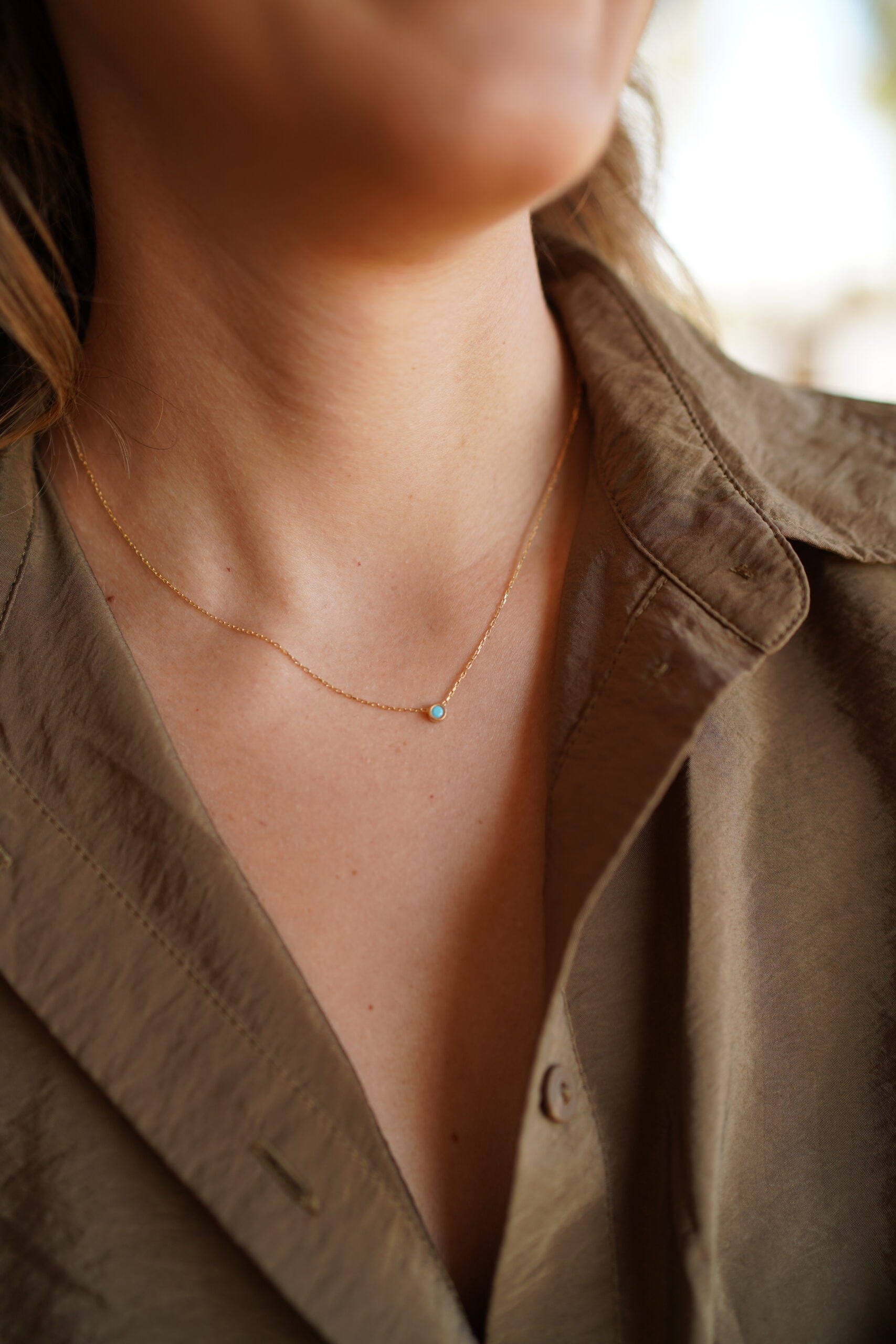 Collar en plata de ley chapado en oro con colgante de forma circular con piedra de turquesa.