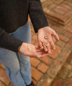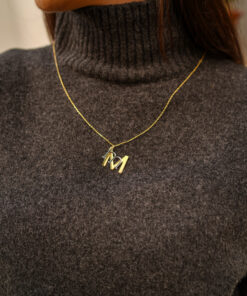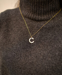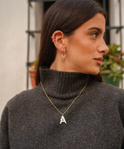 Collar en plata de ley chapado en oro con dos iniciales colgando. En este elegante diseño apreciamos una inicial mayúscula mayor, en plata chapada en oro y otra minúscula más pequeña en plata en su color. Esta combinación hace de este collar una muestra de originalidad y belleza.