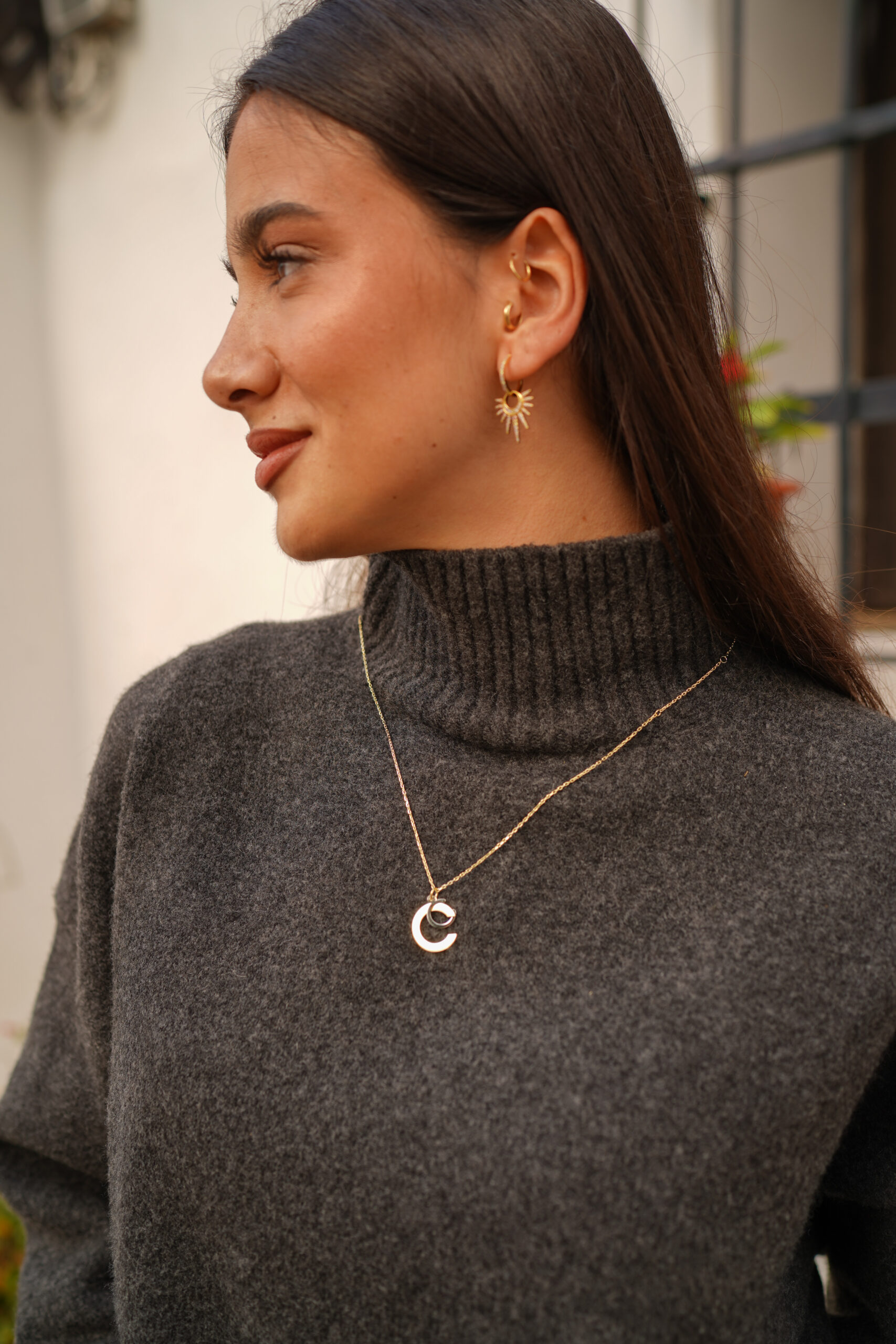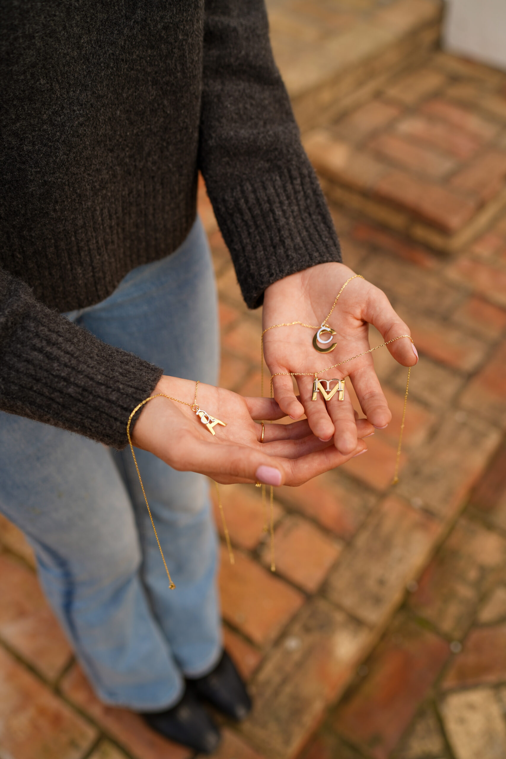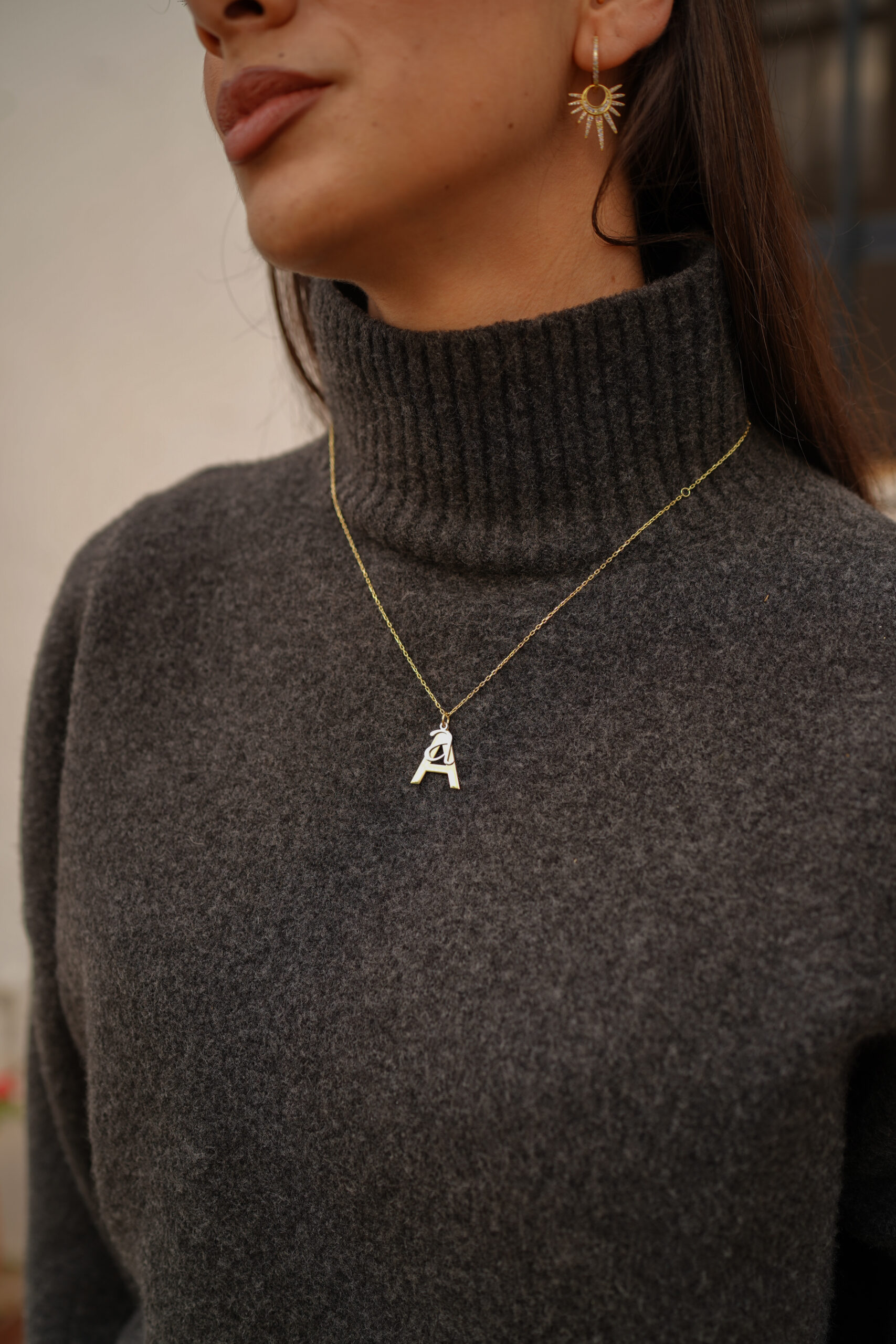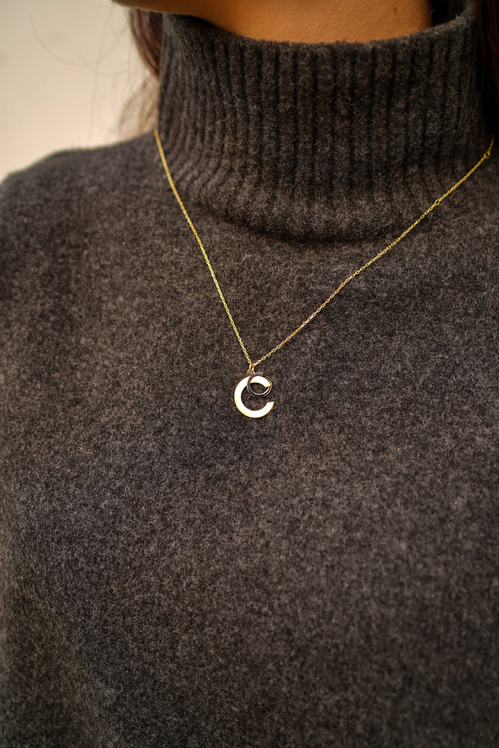 Collar en plata de ley chapado en oro con dos iniciales colgando. En este elegante diseño apreciamos una inicial mayúscula mayor, en plata chapada en oro y otra minúscula más pequeña en plata en su color. Esta combinación hace de este collar una muestra de originalidad y belleza.