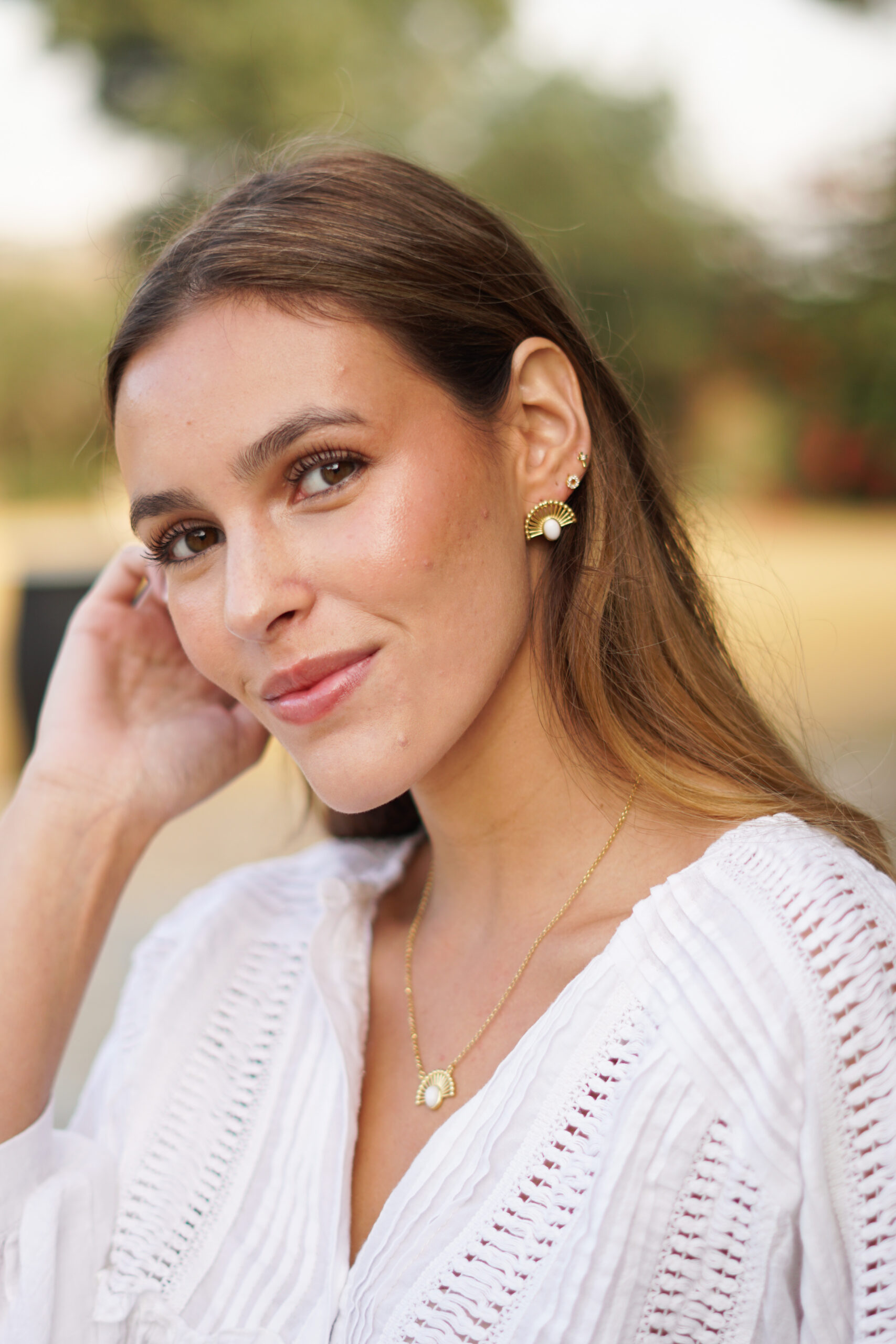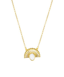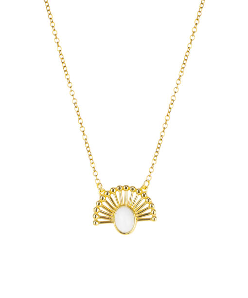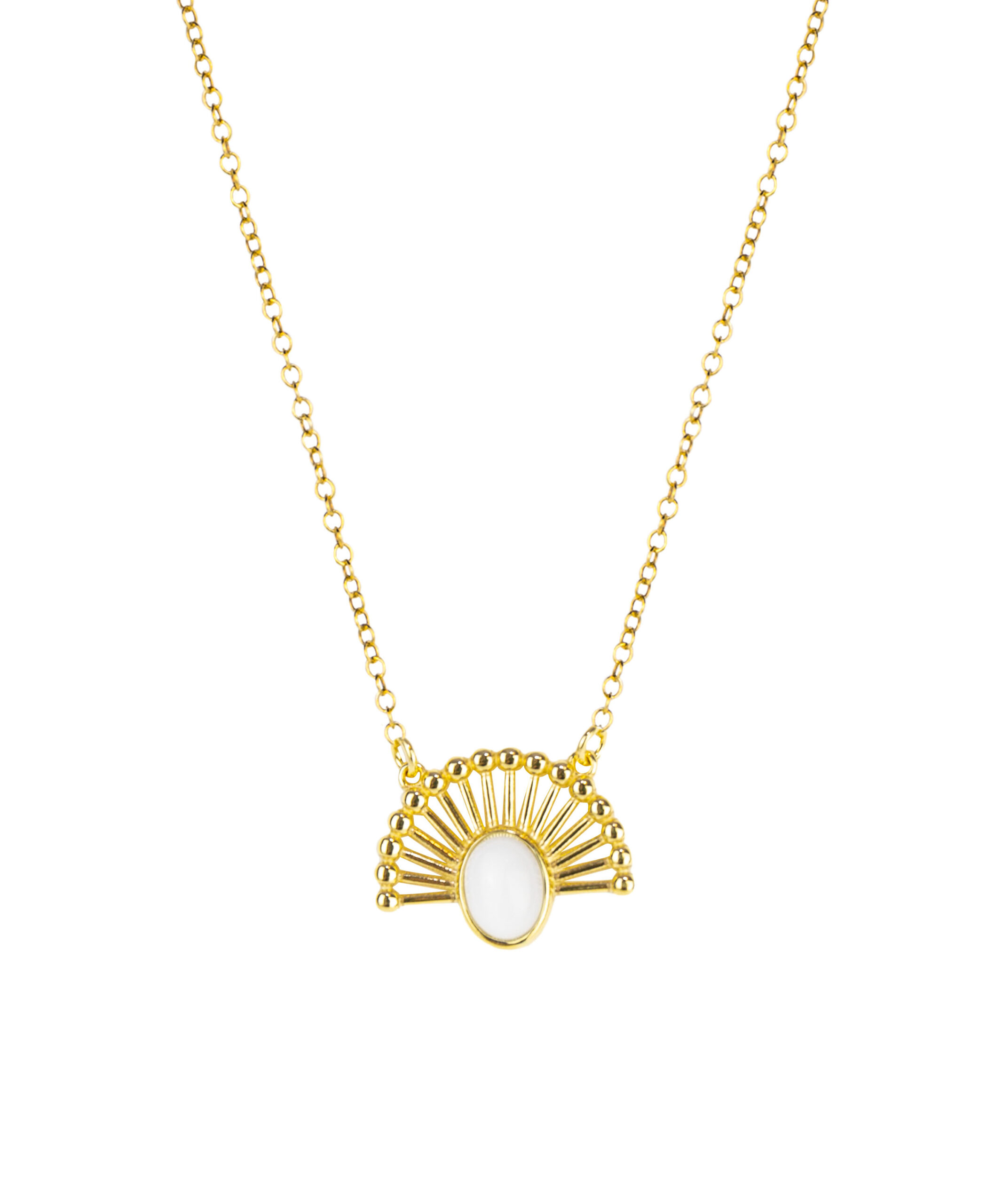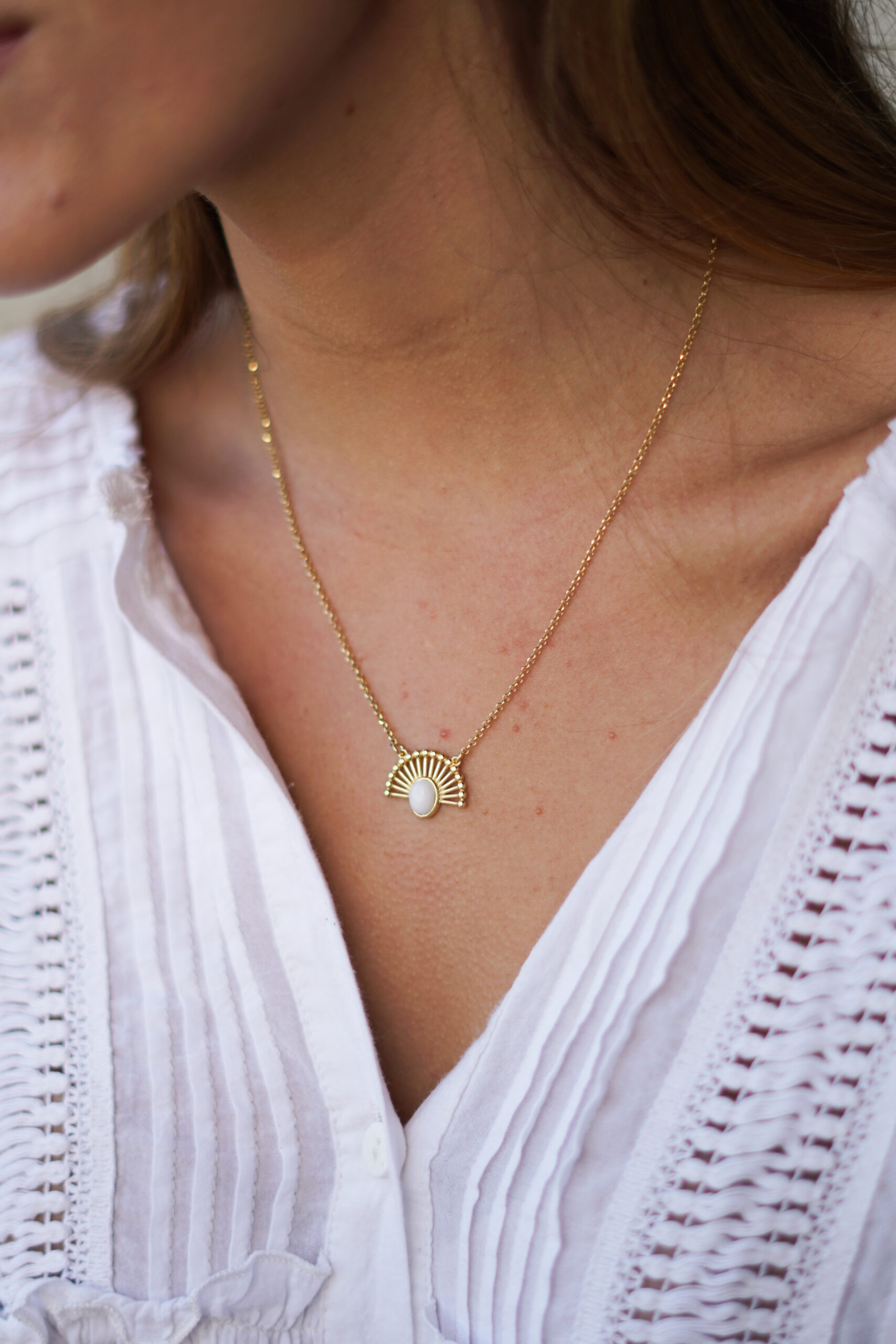 Collar en plata de ley chapado en oro con colgante en forma de semicírculo con una piedra luna en el centro.