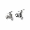 Gemelos en plata de ley con forma de bicicleta.
