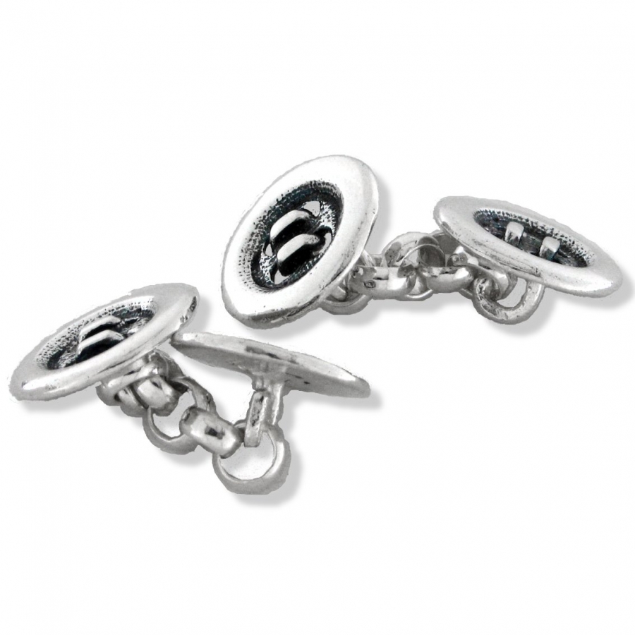 Gemelos en plata de ley con forma de botón por ambos lados
