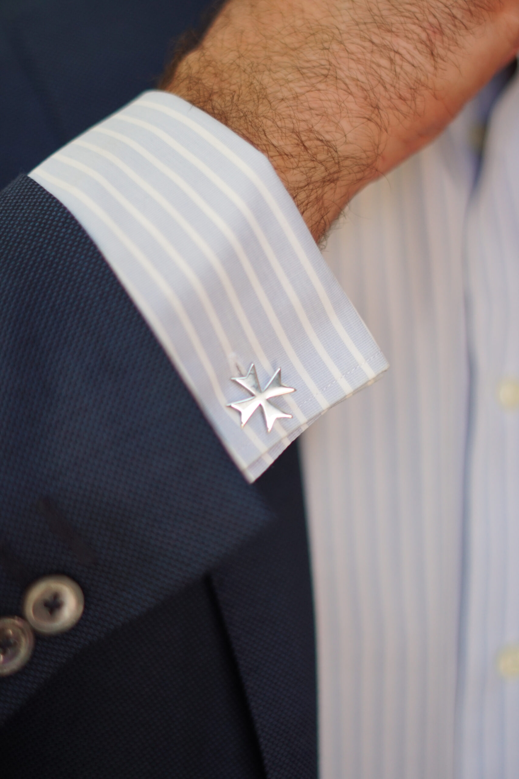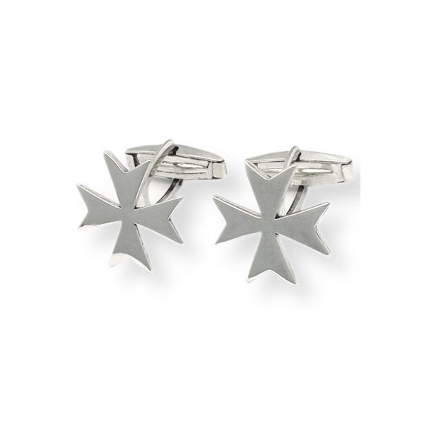 Gemelos en plata de ley con forma de Cruz de Malta.
