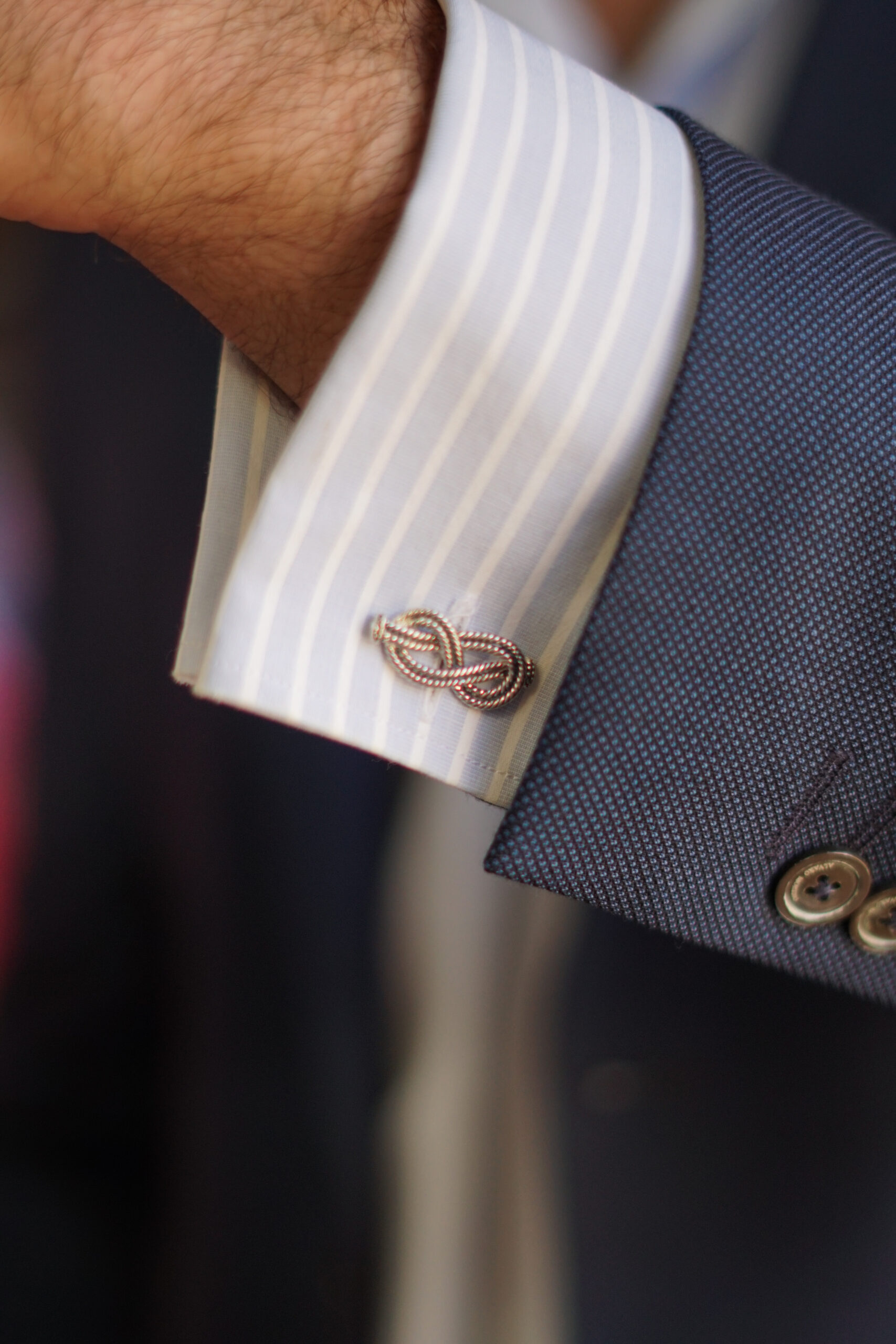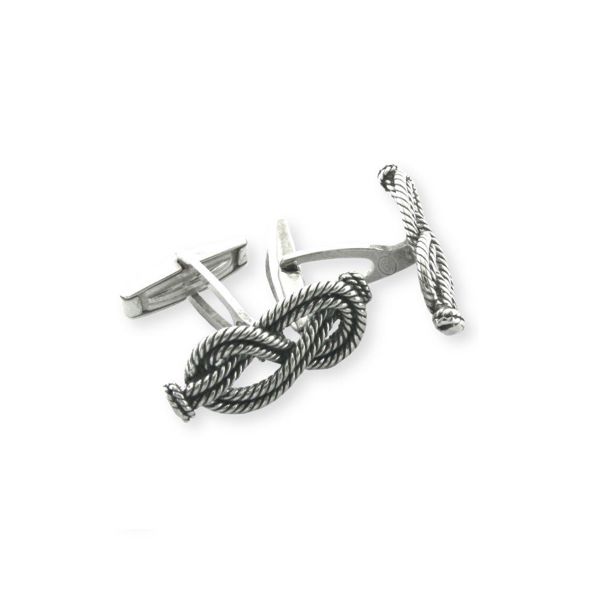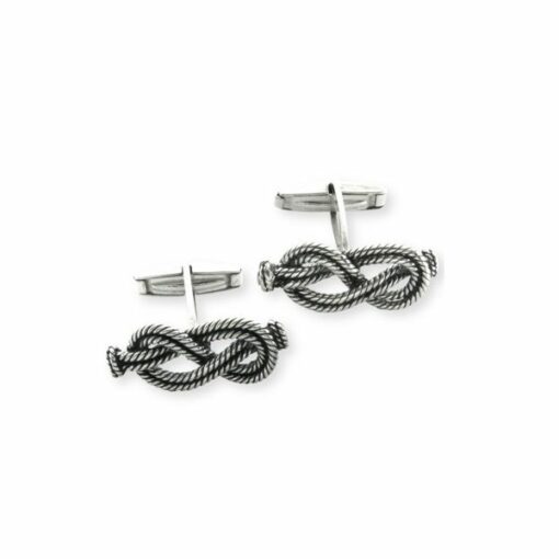 Gemelos en plata de ley con forma de nudo marinero doble.