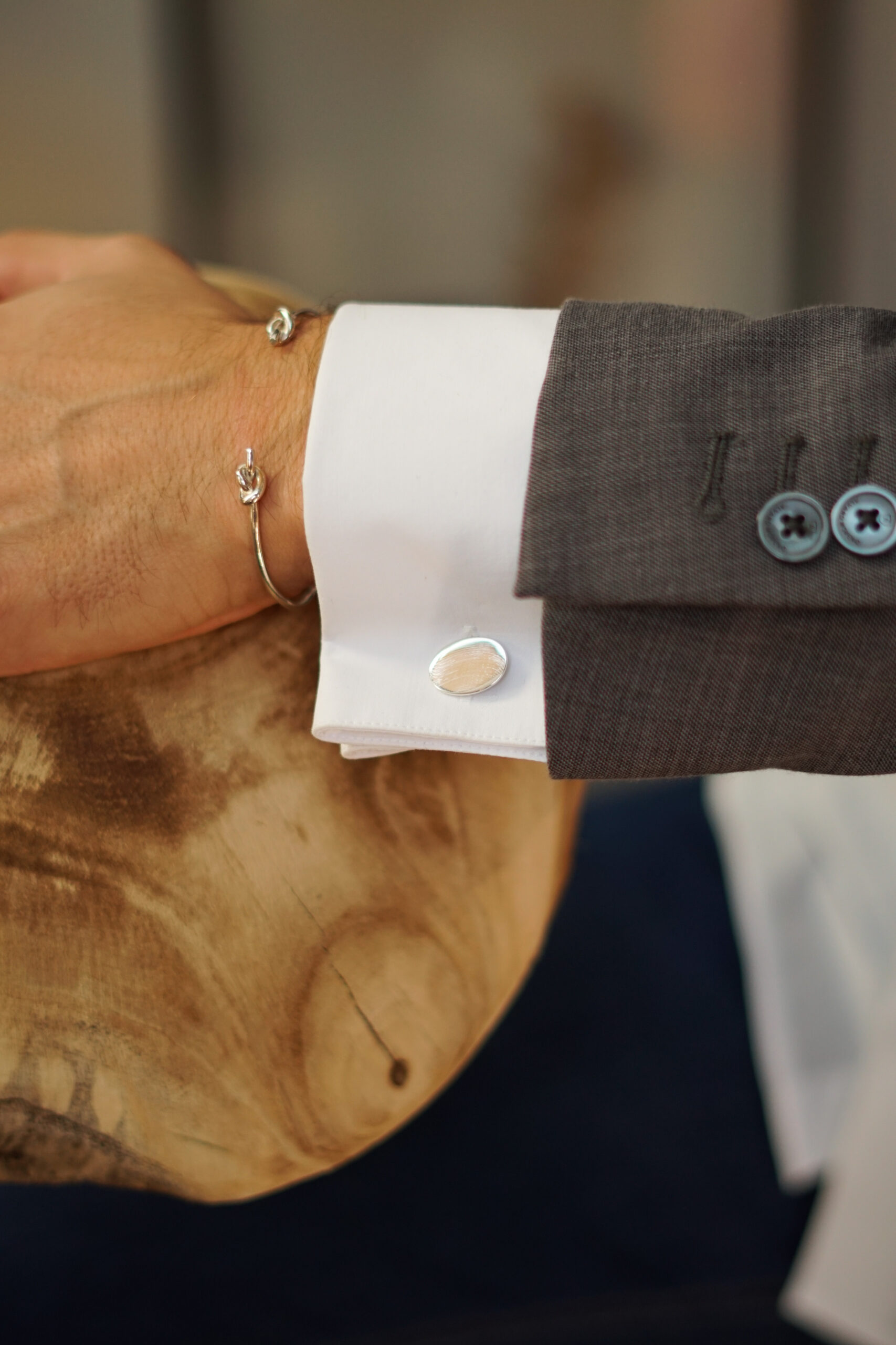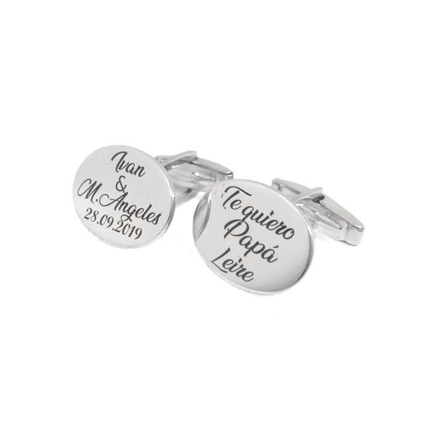 Gemelos en plata de ley con forma oval personalizados con posibilidad de grabar texto breve, iniciales, logotipo, firma…