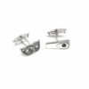Gemelos en plata de ley con forma rectangular con inscripciónes «Papá» de varios tipos de fuentes distintas.