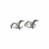 Gemelos en plata de ley con forma de moneda de peseta.