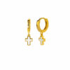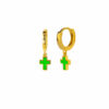 Pendiente aro en plata de ley chapado en oro con colgante en forma de cruz con esmalte turquesa.