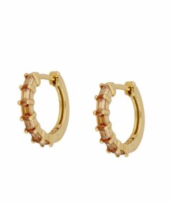 Pendientes aros en plata de ley chapado en oro con seis circonitas baquette color Champagne