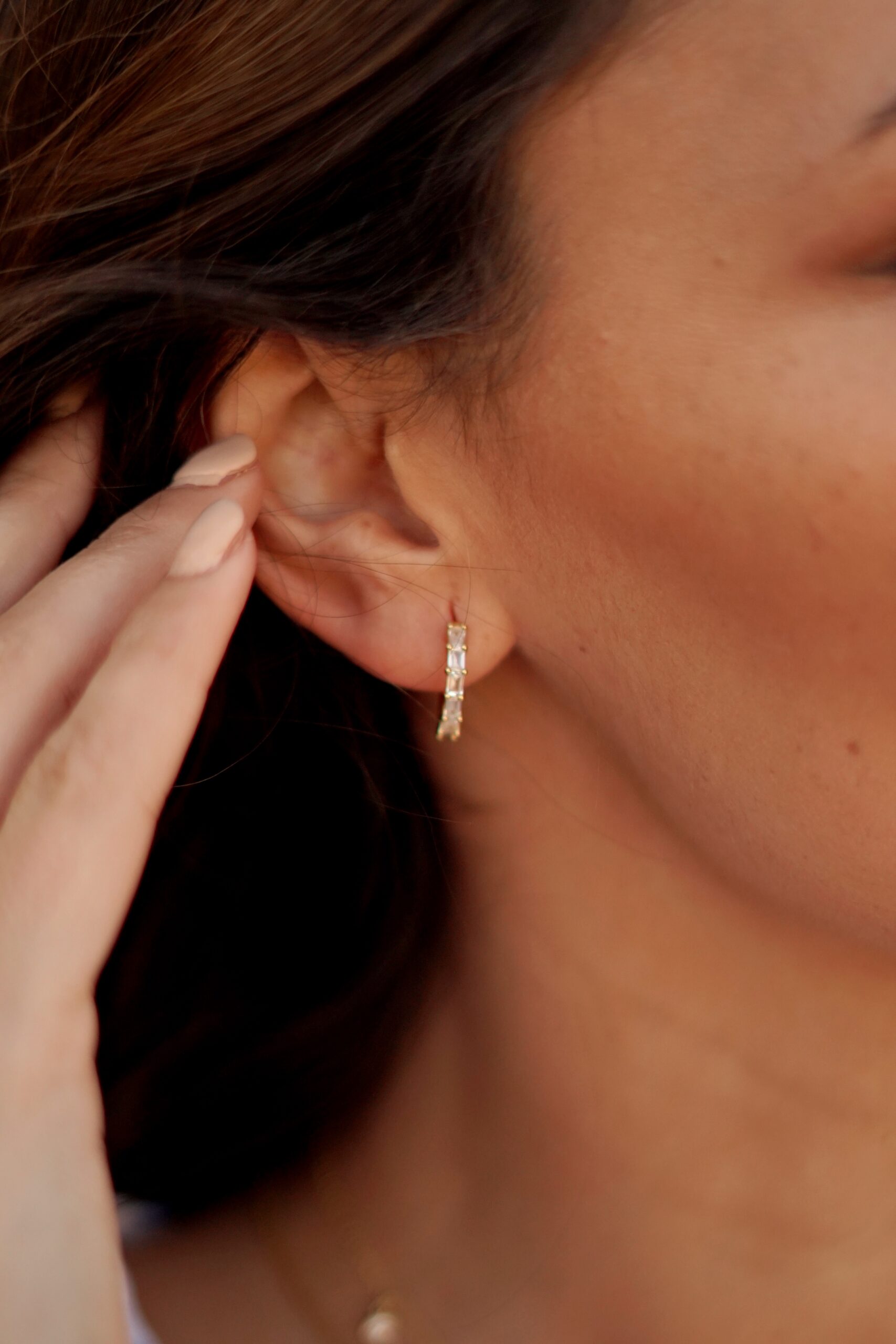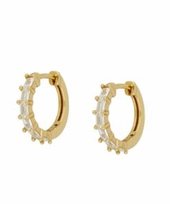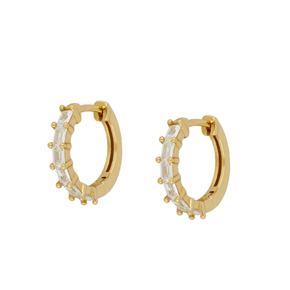 Pendientes aros en plata de ley chapado en oro con seis circonitas baquette
