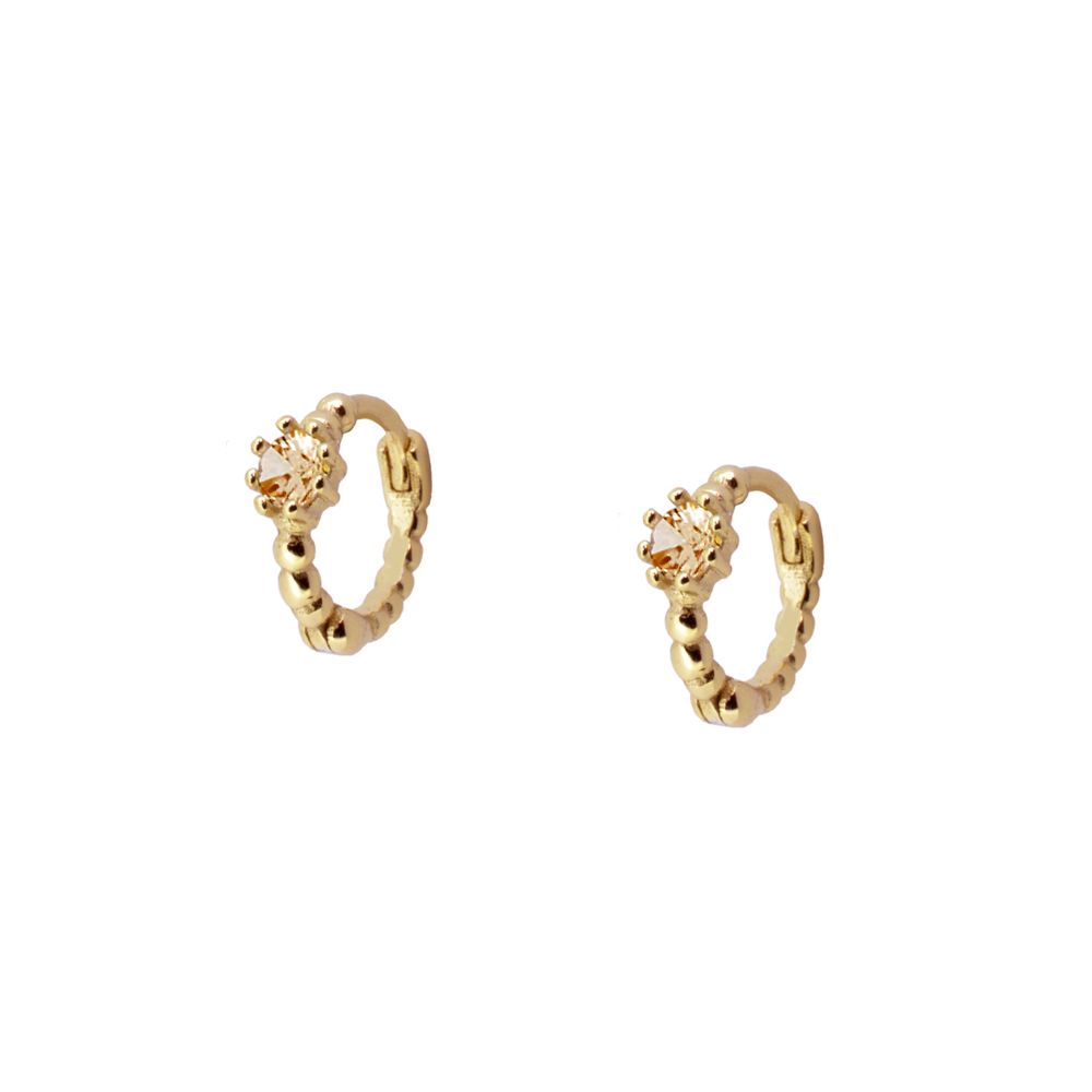 Pendientes aros en plata de ley chapados en oro con circonitas Champagne.