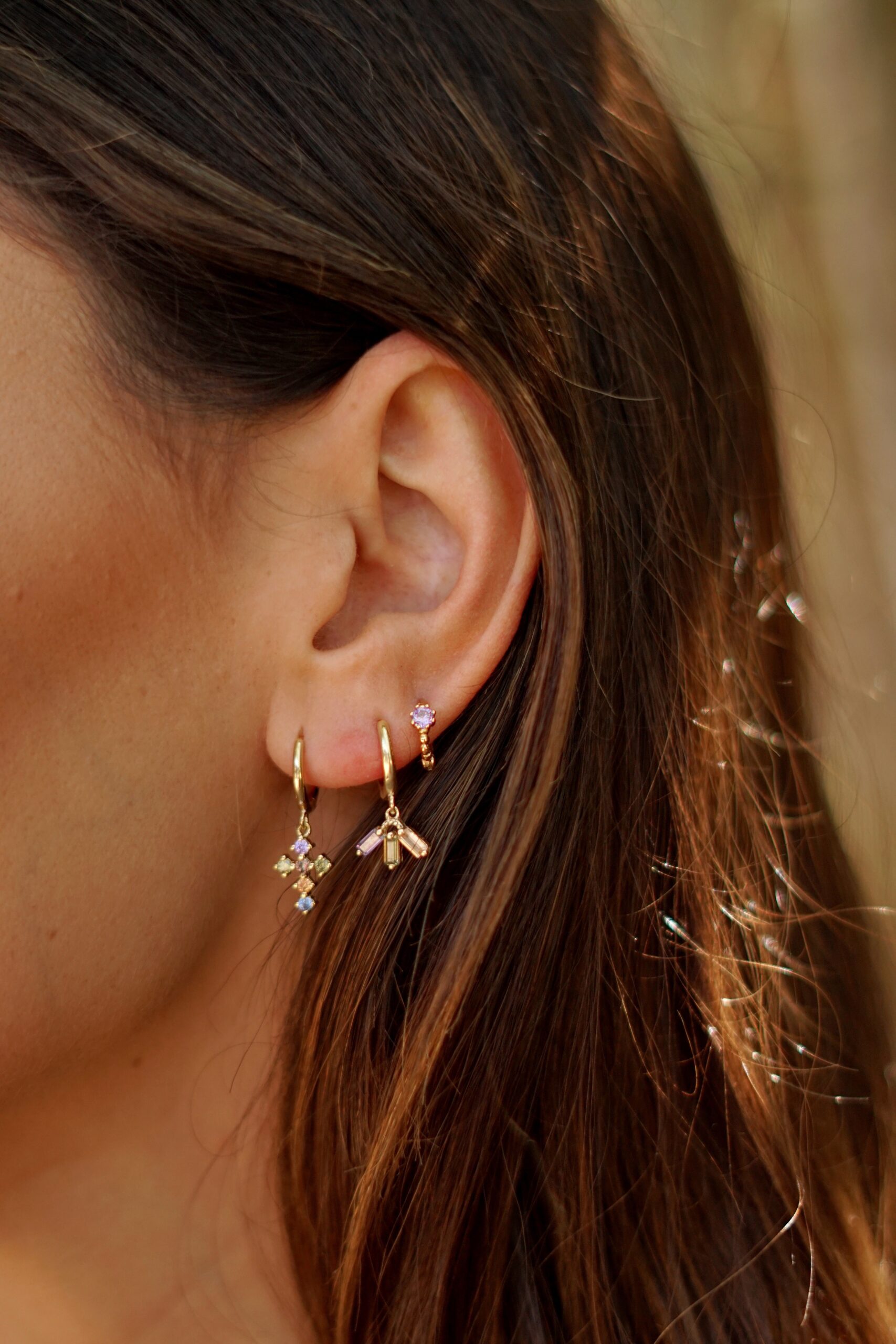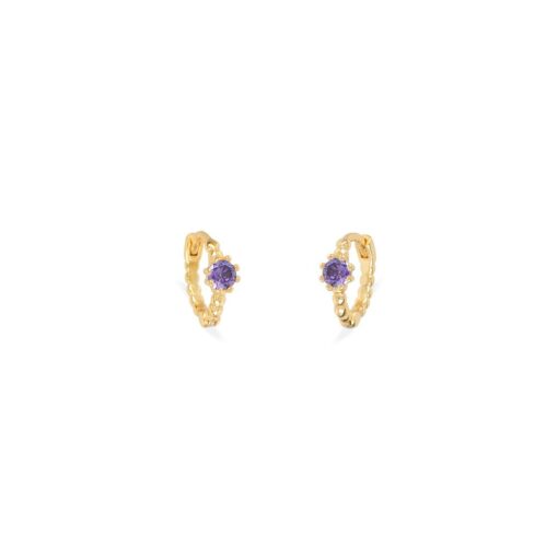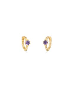 Pendientes aros en plata de ley chapados en oro con circonita lila