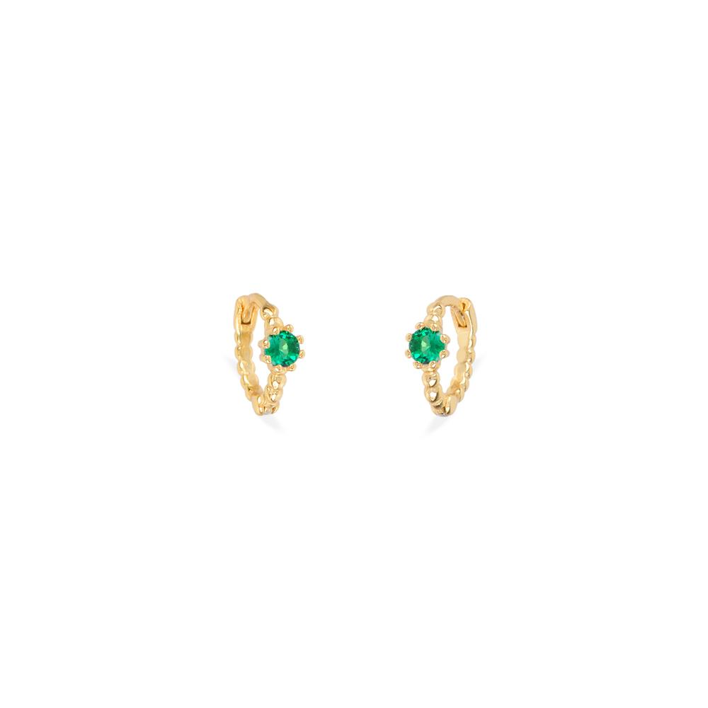 Pendientes aros en plata de ley chapados en oro con circonitas verdes.